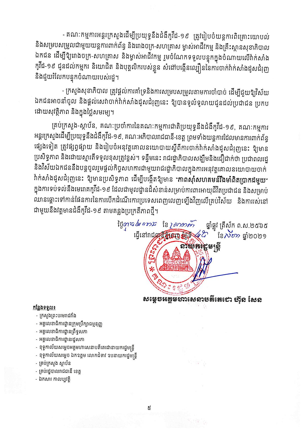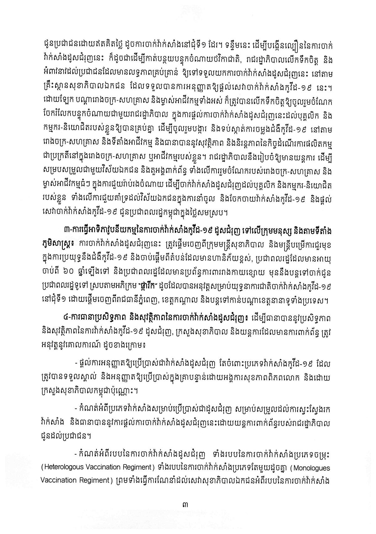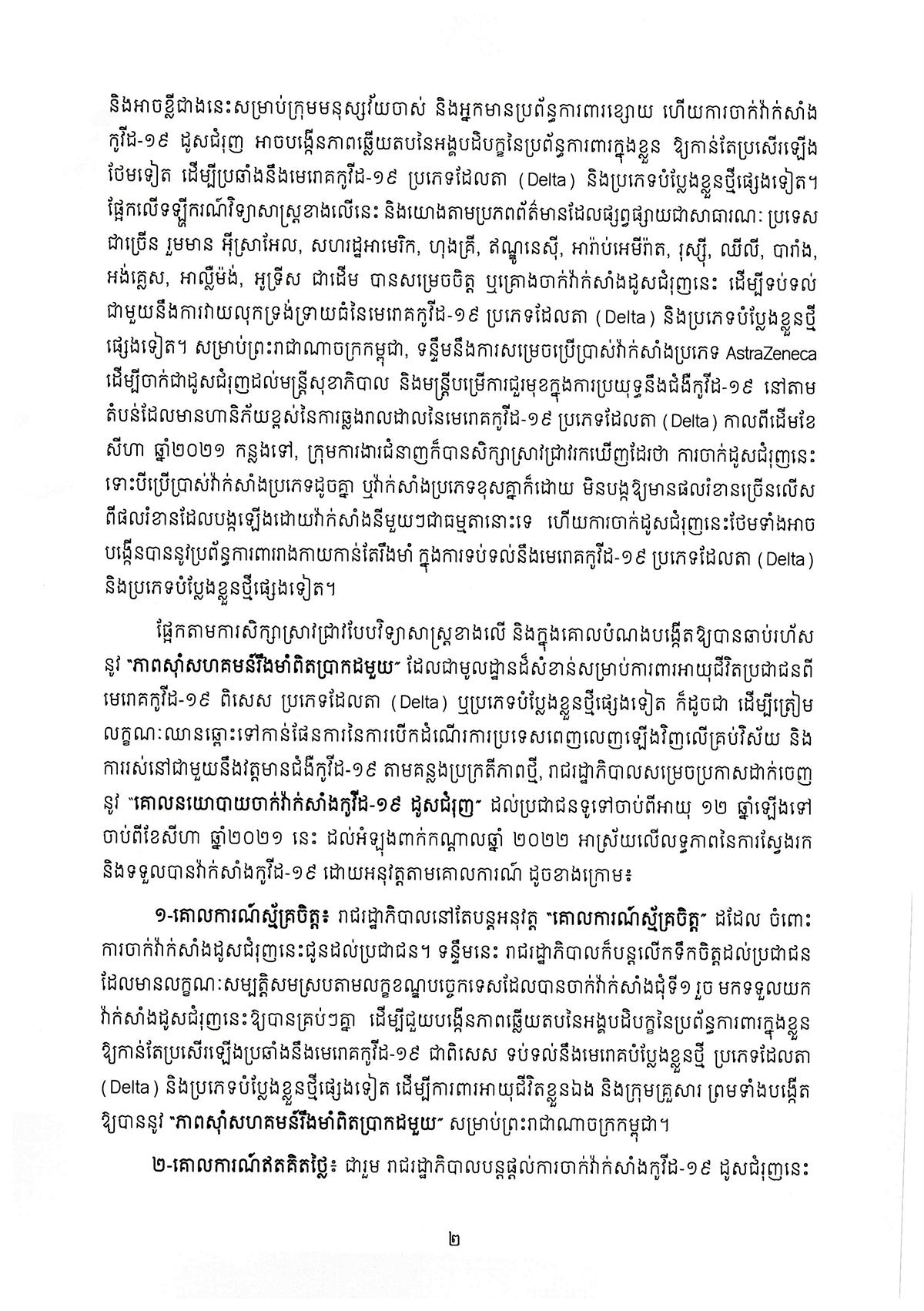 រាជរដ្ឋាភិបាលកម្ពុជា សម្រេចដាក់ចេញនូវគោលនយោបាយចាក់វ៉ាក់សាំងកូវីដ១៩ ដូសជំរុញ ធ្វើឡើងចាប់ពីខែសីហា ឆ្នាំ២០២១ ដល់អំឡុងពាក់កណ្តាលឆ្នាំ២០២២