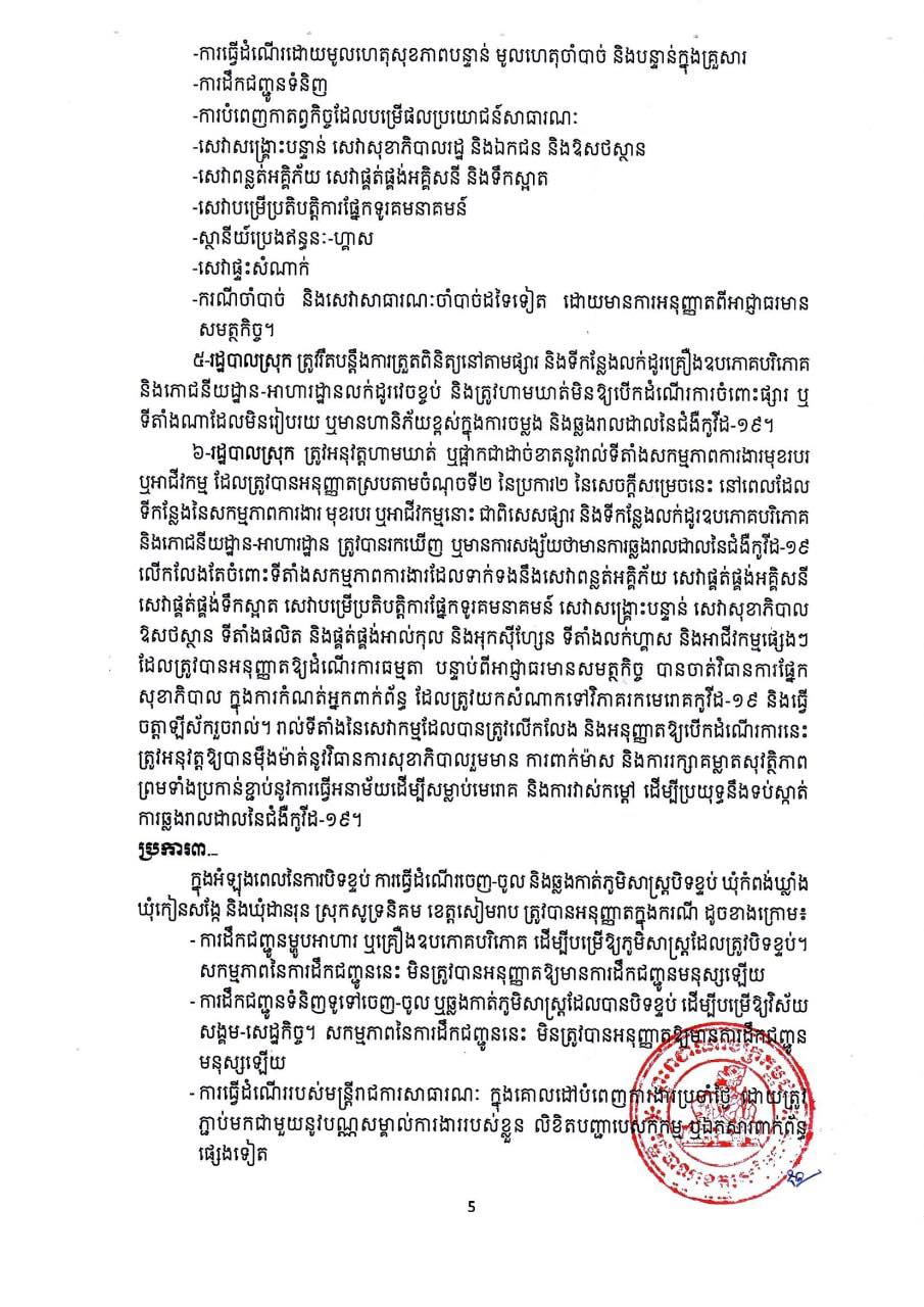 រដ្ឋបាលខេត្តសៀមរាប សម្រេចបន្តកំណត់ជា “តំបន់លឿងទុំ” នៅឃុំចំនួន៣ ក្នុងស្រុកសូទ្រនិគម សារជាថ្មី ដើម្បីទប់ស្កាត់ការឆ្លងរាលដាល​ជំងឺកូវីដ១៩ ក្នុងខេត្តសៀមរាប