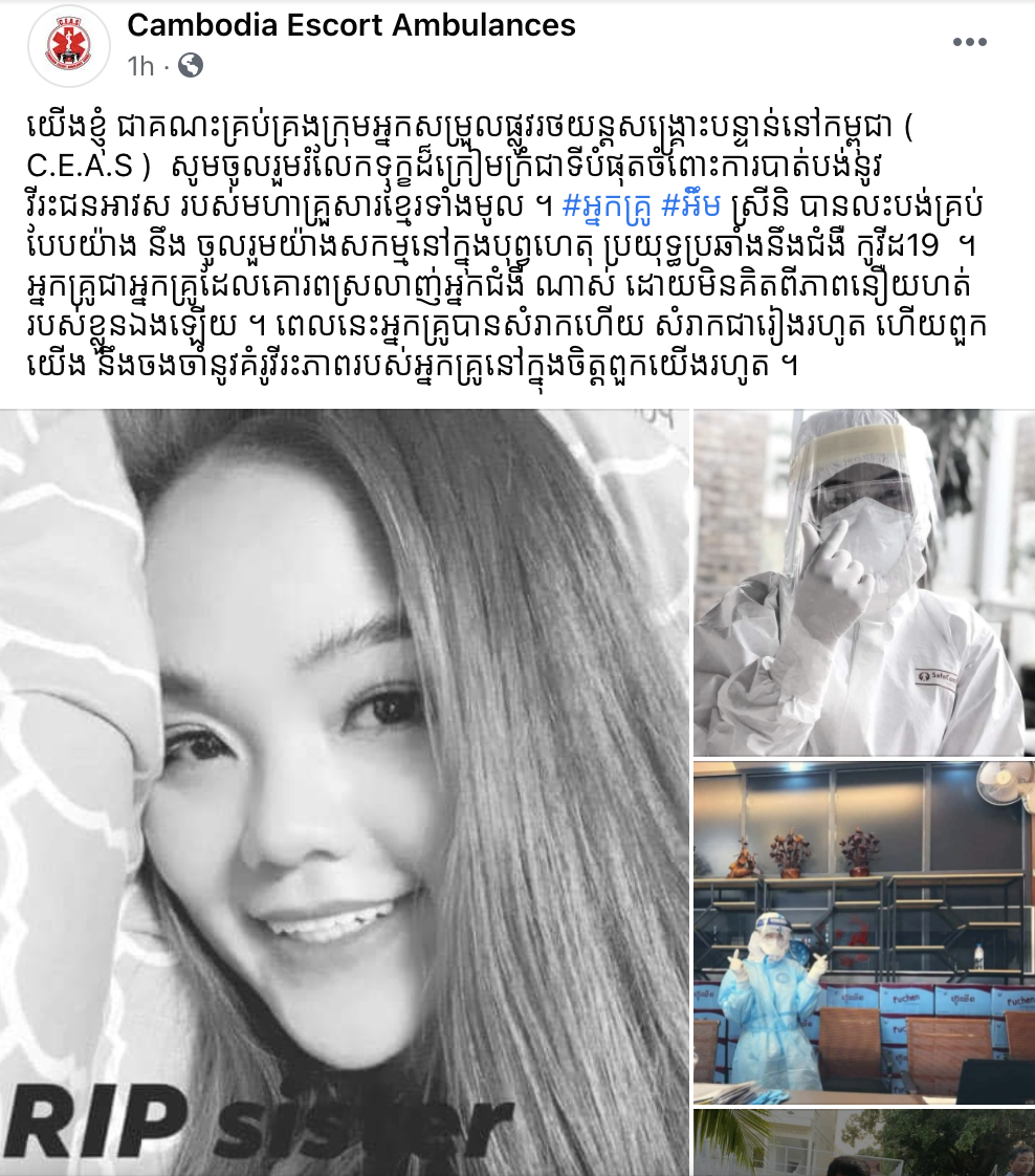 ស្រណោះណាស់! ក្រុមគ្រូពេទ្យជាច្រើនបង្ហោះសារសោកស្តាយ និងរំលែកទុក្ខដល់អ្នកគ្រូពេទ្យម្នាក់ ដែលបានលាចាកលោក ដោយជំងឺកូវីដ