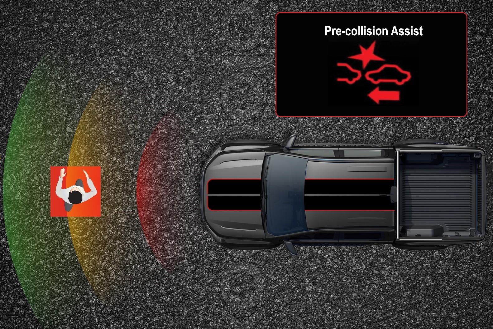 – ប្រព័ន្ធផ្ដល់សញ្ញាគ្រោះថ្នាក់ពេលមានឧបសគ្គ ឬអ្នកថ្មើរជើងឆ្លងកាត់ និងប្រព័ន្ធចាប់ហ្វ្រាំងបន្ទាន់ដោយស្វ័យប្រវត្តិ (Pre-Collision Assist with Autonomous Emergency Braking)