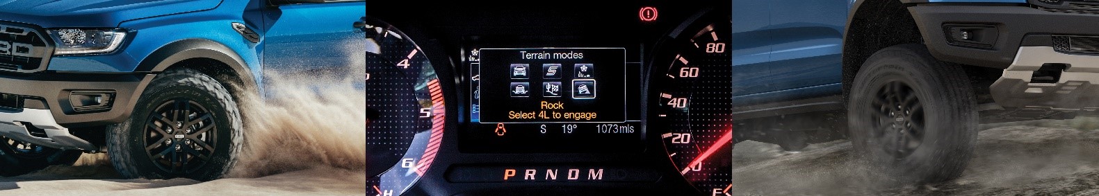 – ប្រព័ន្ធគ្រប់គ្រងការបើកបរគ្រប់ស្ថានភាពផ្លូវ (Terrain Management System) អាចជួយសម្រួលដល់ការបើកបរនូវជម្រើសផ្លូវ 6 ប្រភេទផ្សេងគ្នាដូចជា៖ ការបើកបរនៅលើផ្លូវធម្មតា ការបើកបរបែបស្ព័រ ផ្លូវដែលមានស្ថានភាពព្រិល/មានគ្រួស/មានស្មៅច្រើន ផ្លូវដីខ្សាច់/ដីភក់ ផ្លូវដែលមានដុំថ្មធំៗ/គ្រួស និងចុងក្រោយគឺ Baja Mode ដែលផលិតឡើងយ៉ាងពិសេសសម្រាប់តែរថយន្ត Ford Raptor ដោយ Mode នេះប្រើសម្រាប់ការបើកបរនៅលើផ្លូវដែលមានឧបសគ្គច្រើន ឬផ្លូវ Off-Road តែអាចបើកបរល្បឿនលឿនបាន