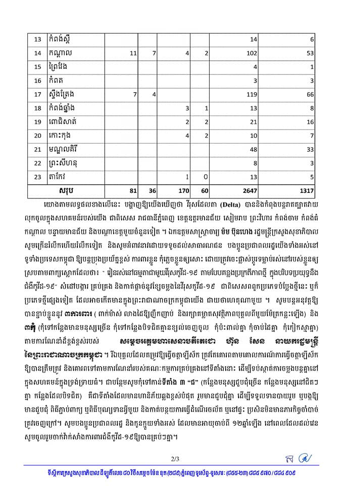 ក្រសួងសុខាភិបាល ប្រកាសរកឃើញករណីកូវីដបំប្លែងថ្មី ដែលតា បន្ថែមទៀត ករណីសរុបកើនដល់ ២៦៤៧នាក់ហើយ