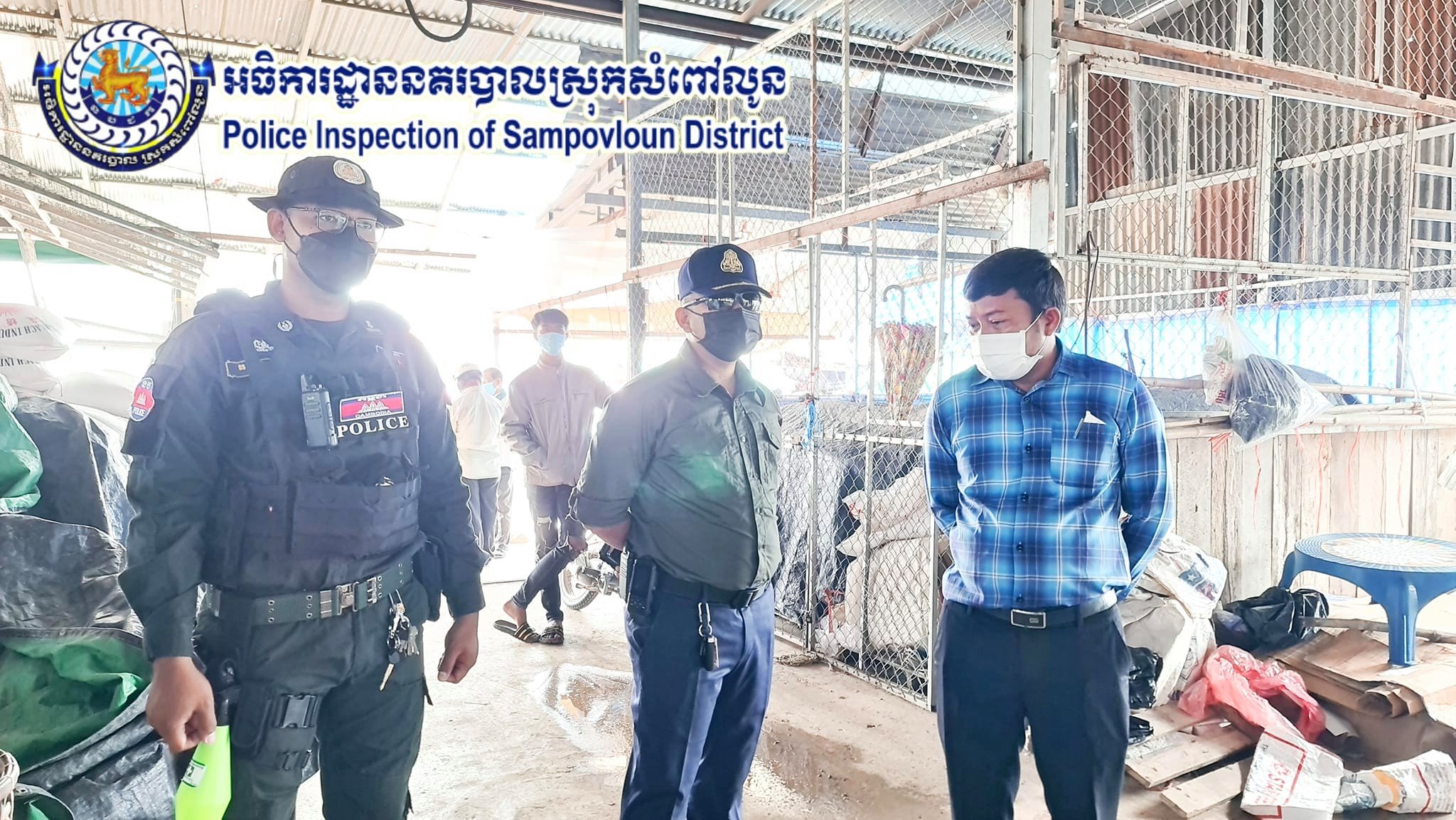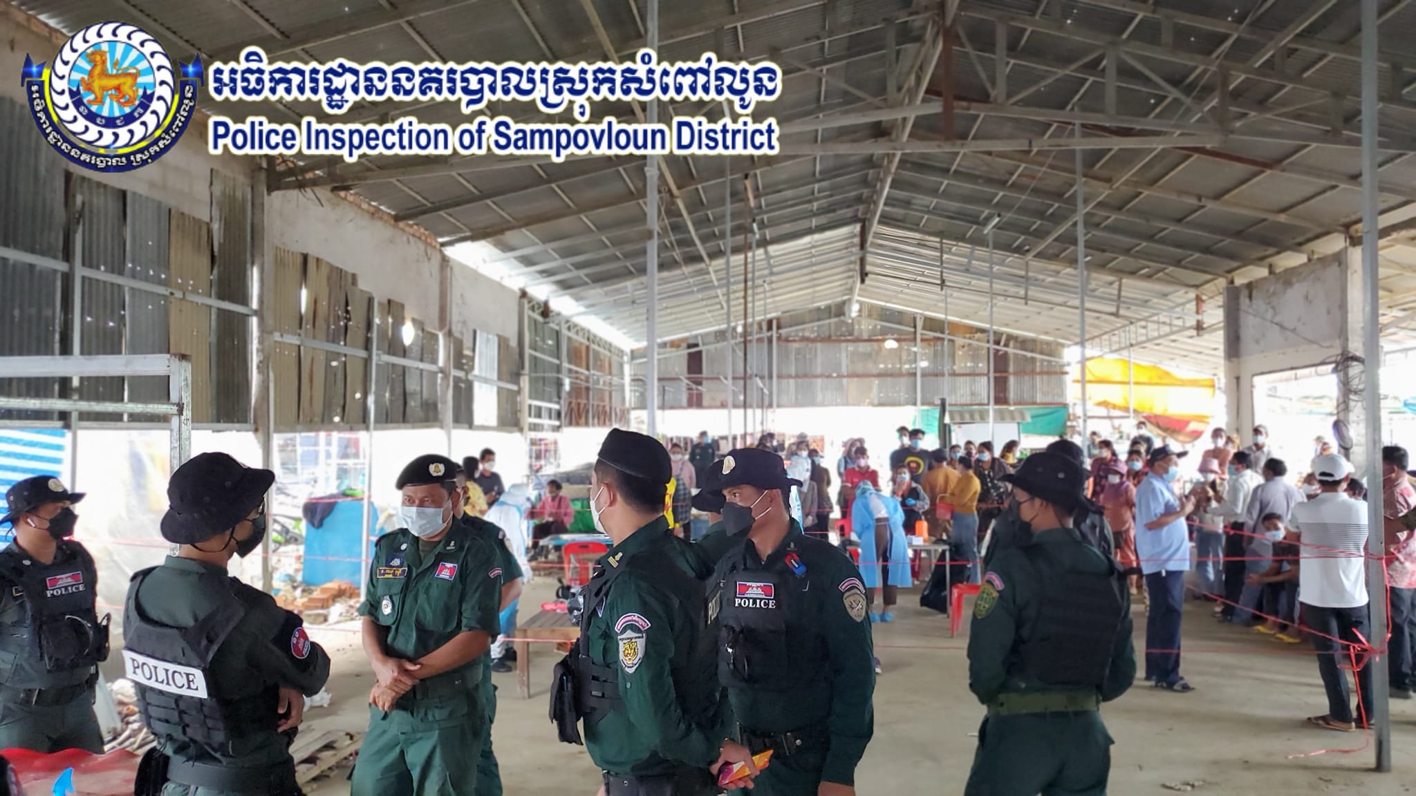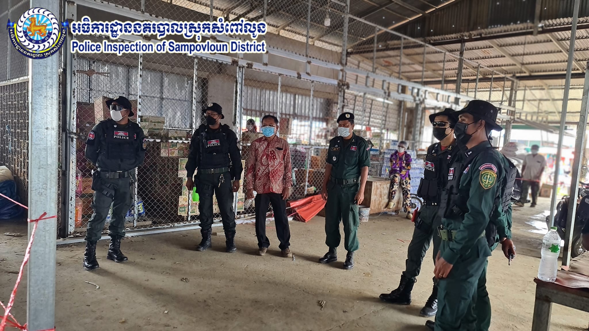 ខេត្តបាត់ដំបង៖ យោងតាមការចុះផ្សាយរបស់ អធិការដ្ឋាននគរបាលស្រុកសំពៅលូន បានឲ្យដឹងថា ដោយមានការគិតគូរ និងយកចិត្តទុកដាក់ អំពីសន្តិសុខសុវត្ថិភាព និងទប់ស្កាត់ការរីករាលដាលជំងឺឆ្លងកូវីត-១៩ របស់បងប្អូនប្រជាពលរដ្ឋនៅក្នុងមូលដ្ឋានស្រុកសំពៅលូន នៅថ្ងៃទី១១ ខែកញ្ញា ឆ្នាំ២០២១ វេលាម៉ោង ៨៖០០ នាទី លោកវរសេនីយ៍ទោ ទឹម វិឆ័យ អធិការនគរបាលស្រុក បានដឹកនាំកម្លាំងក្រុមអន្តរាគមន៍ និងកម្លាំងប៉ុស្តិ៍នគរបាលរដ្ឋបាលសន្តិភាព ចូលរួមជាមួយលោក អភិបាលរងស្រុក លោកអនុប្រធានមន្ទីរពេទ្យបង្អែកស្រុកសំពៅលូន បានចុះបិទខ្ទប់ទីតាំង ផ្សារតាឡូឡា ស្ថិតក្នុងភូមិគីឡូ១៣ ឃុំសន្តិភាព ស្រុកសំពៅលូន។