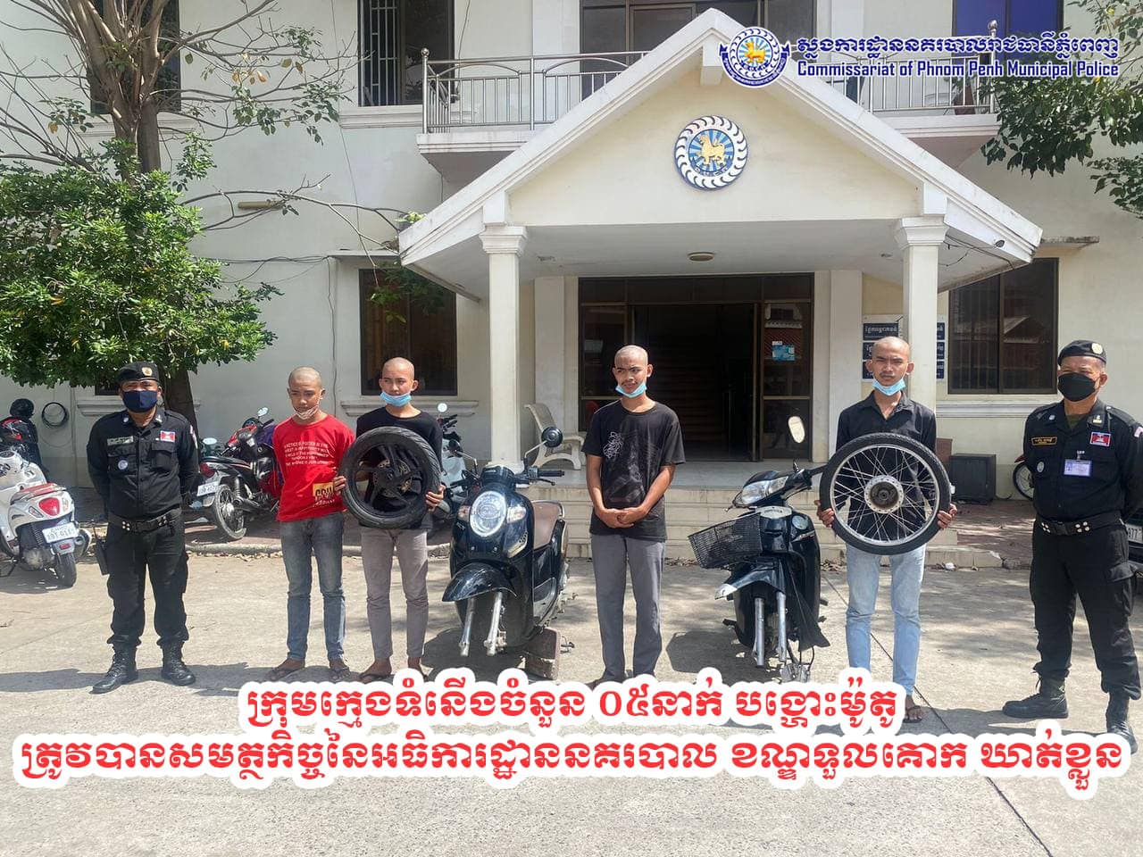 ប្រហើនណាស់! ក្មេងទំនើងមួយក្រុម បង្ហោះម៉ូតូយ៉ាងអាណាធិបតេយ្យ តាមដងផ្លូវសាធារណ: ត្រូវបានសមត្ថកិច្ចឃាត់ខ្លួន ចាប់កោរសក់ និងណែនាំអប់រំធ្វើកិច្ចសន្យា