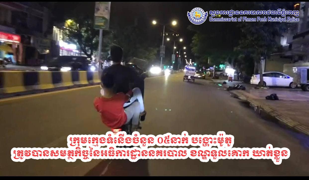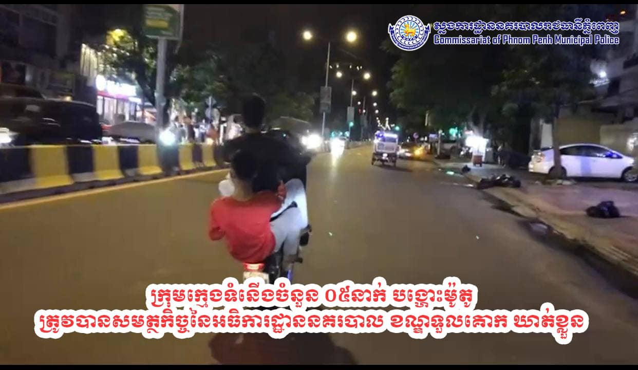 រាជធានីភ្នំពេញ៖ យោងតាមការចុះផ្សាយពី ស្នងការដ្ឋាននគរបាលរាជធានីភ្នំពេញ បានឲ្យដឹងថា នៅថ្ងៃទី១២ ខែកញ្ញា ឆ្នាំ២០២១ វេលាម៉ោងប្រហែល ២១៖៣០នាទី កម្លាំងផ្នែកជំនាញ នៃអធិការដ្ឋាននគរបាល ខណ្ឌទួលគោក បានធ្វើការឃាត់ខ្លួនក្រុមក្មេងទំនើង ចំនួន០៥នាក់ ជាក់ស្ដែងករណីបង្ហោះម៉ូតូបង្ករភាពអាណាធិបតេយ្យ តាមដងផ្លូវសាធារណៈ ប្រព្រឹត្តនៅចំណុចលើដងផ្លូវលេខ១២៨ ក្រុមទី២៣ ភូមិ៧ សង្កាត់ទឹកល្អក់ទី១ ខណ្ឌទួលគោក រាជធានីភ្នំពេញ។