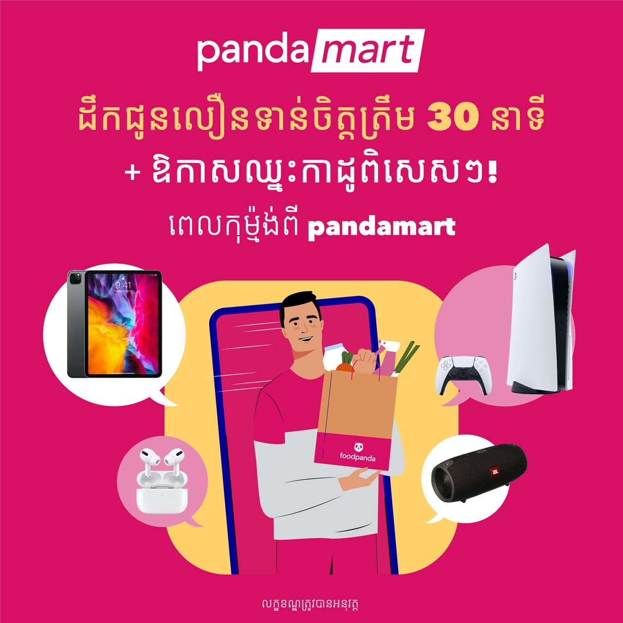 ចាប់ពីពេលនេះតទៅ អ្នកបើប្រាស់ App របស់ foodpanda នឹងទទួលបានបទពិសោធថ្មី និងកាន់តែមានភាពងាយស្រួលក្នុងការទិញទំនិញប្រើប្រាស់ប្រចាំថ្ងៃដោយក្រុមហ៊ុនដឹកជញ្ជូនរហ័សឈានមុខគេនៅកម្ពុជាមួយនេះ បានដាក់ឲ្យដំណើរការលើមុខងារថ្មីគឺ pandamart ដែលប្រមូលផ្តុំនូវមុខទំនិញ និងសម្ភារប្រើប្រាស់ដ៏សម្បូរបែប។