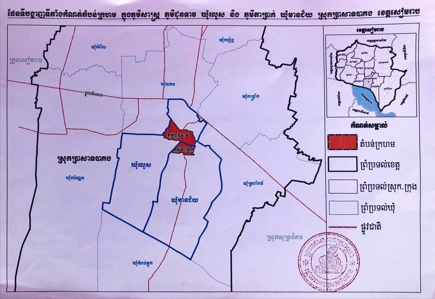 អាជ្ញាធរខេត្តសៀមរាប ដាក់ភូមិចំនួន២ ក្នុងស្រុកប្រាសាទបាគង ជា “តំបន់ក្រហម” រយៈពេល១សប្តាហ៍