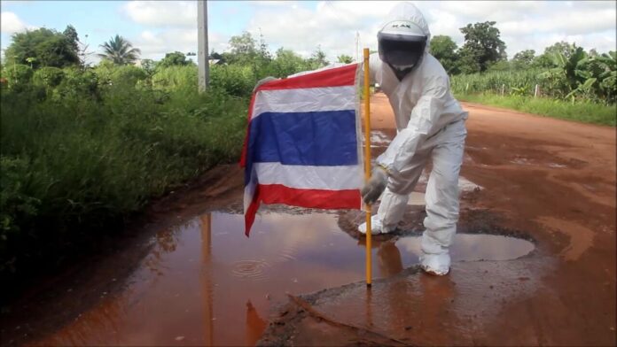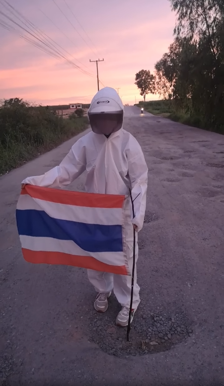 ខឹងផ្លូវខូចក្រហេងក្រហូងអត់ឃើញអាជ្ញាធរជួសជុល ពលរដ្ឋថៃនាំគ្នាថតបង្ហោះវីដេអូស្លៀកឈុតធ្វើដូចនៅភពព្រះចន្ទ ទទួលបានការចាប់អារម្មណ៍យ៉ាងខ្លាំង (មានវីដេអូ)
