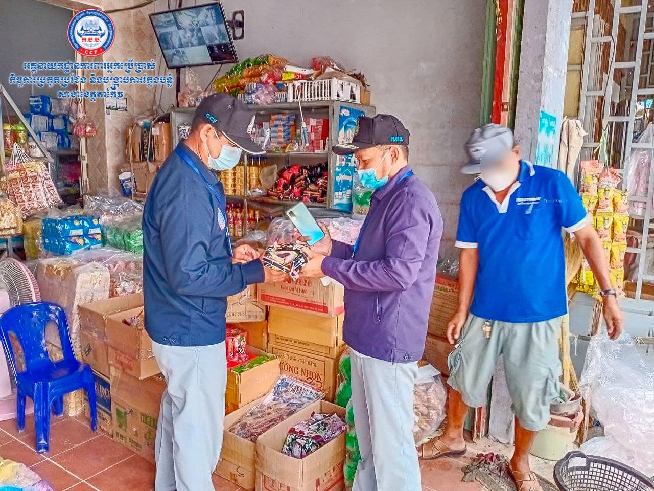(ខេត្តតាកែវ)៖ យោងតាមការចុះផ្សាយរបស់ អគ្គ.ការពារអ្នកប្រើប្រាស់ កិច្ចការប្រកួតប្រជែង និងបង្ក្រាបការក្លែងបន្លំ បានឲ្យដឹងថា មន្ត្រីសាខា ក.ប.ប. ខេត្តតាកែវ នៅថ្ងៃទី២៤ ខែកញ្ញា ឆ្នាំ២០២១ សហការជាមួយអាជ្ញាធរដែនដី បានធ្វើការចុះត្រួតពិនិត្យទំនិញ នៅផ្សារកំពង់ជ្រៃតា និងផ្ទះលក់ដូរទំនិញ ក្នុងភូមិកំពង់ជ្រៃ ឃុំស្មោង ស្រុកទ្រាំង ខេត្តតាកែវ។
