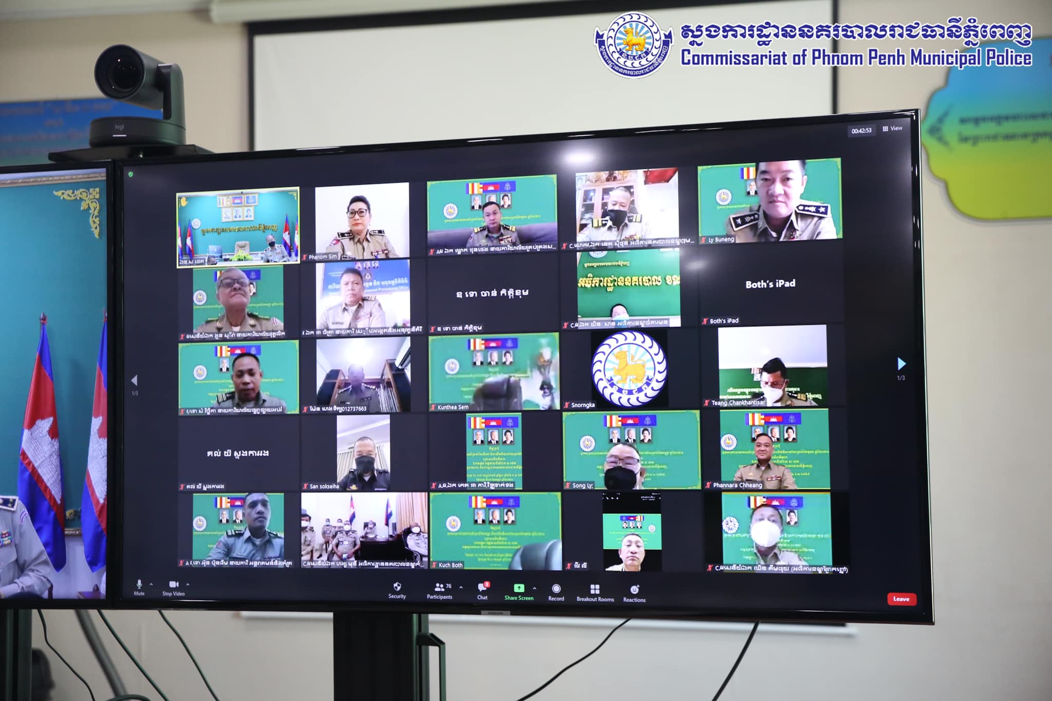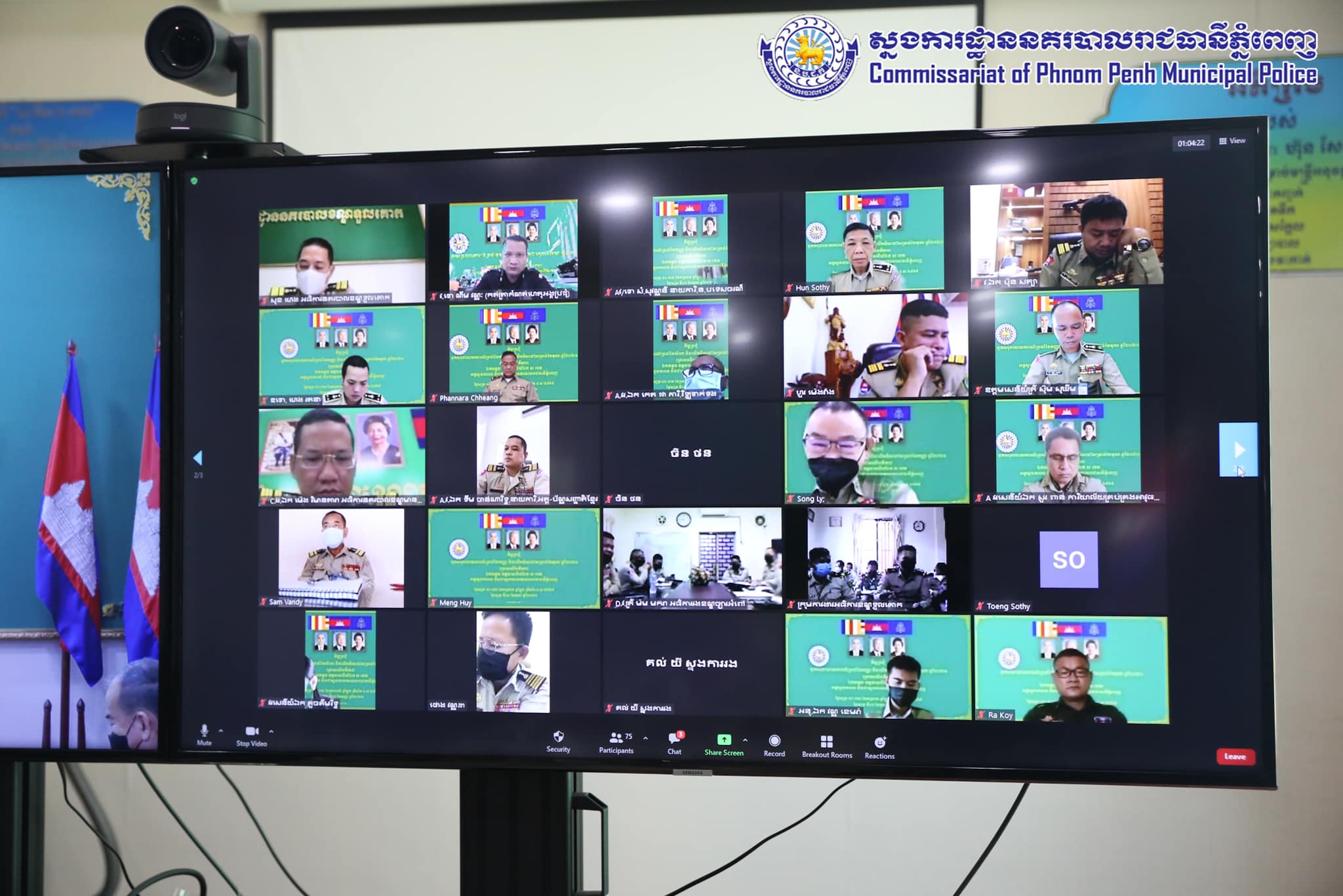 នៅព្រឹកថ្ងៃទី០១ ខែតុលា ឆ្នាំ២០២១ ឯកឧត្តម ឧត្តមសេនីយ៍ឯក ស ថេត អគ្គស្នងការរង និងជាស្នងការនគរបាលរាជធានីភ្នំពេញ បានអញ្ជេីញដឹកនាំកិច្ចប្រជុំបូកសរុបការងារប្រចាំខែកញ្ញា និងទិសដៅការងារខែតុលា តាមរយ:កិច្ចប្រជុំអនឡាញ Zoom Meeting ។ ក្នុងកិច្ចប្រជុំនេះដែរក៏មានការចូលរួមពីលោក លោកស្រីស្នងការរង លោកនាយការិយាល័យជំនាញ លោកអធិការនគរបាលខណ្ឌទាំង១៤ លោកនាយប៉ុស្តិ៍នគរបាលរដ្ឋបាលទាំង១០៥ ផងដែរ ។