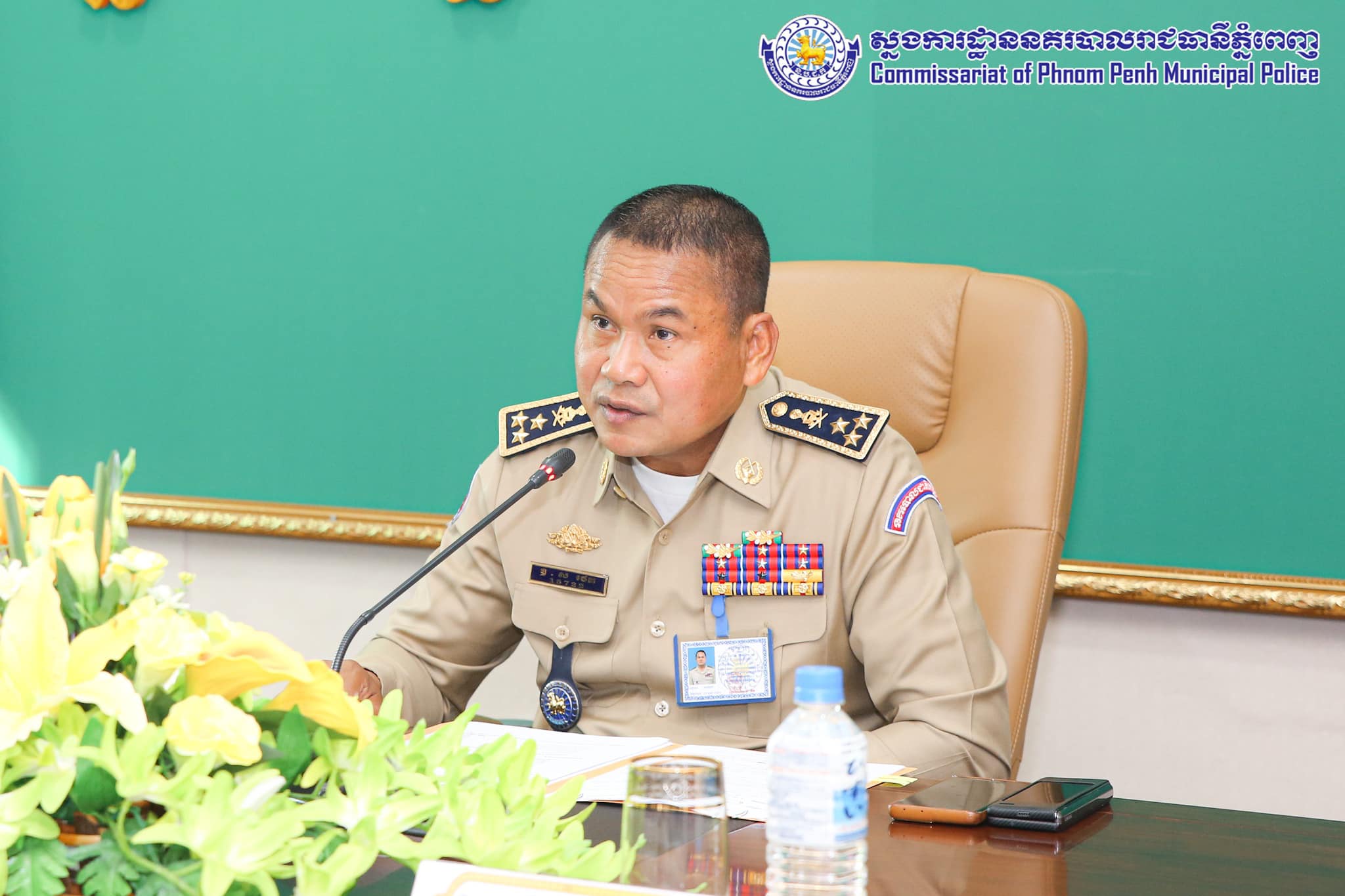 ជាកិច្ចបញ្ចប់ឯកឧត្តមស្នងការ បានណែនាំដល់លោក លោកស្រីស្នងការរងទទួលដឹកនាំតាមបណ្តាអធិការខណ្ឌទាំងអស់ ត្រូវរៀបចំកិច្ចប្រជុំជាប្រចាំដេីម្បីធ្វេីការតាមដាន ដោះស្រាយបញ្ហា និងចាត់វិធាន ជូនបងប្អូនប្រជាពលរដ្ឋឱ្យបានទាន់ពេលវេលា ។ គ្រប់អង្គភាពទាំងអស់ត្រូវចូលរួមសហការជាមួយក្រុមការងារព័ត៌មាន និងប្រតិកម្មរហ័ស ឲ្យបានល្អ ដេីម្បីបន្សាបឲ្យបានទាន់ពេលវេលា នៅរាល់ព័ត៌មានមិនពិត ដែលមានលក្ខណ:ញុះញង់បង្កឲ្យមានភាពវឹកវដល់សង្គមជាតិ ក៏ដូចជាក្នុងបំណងអាក្រក់បង្ខូចកិត្តិយសរបស់ថ្នាក់ដឹកនាំ និងអង្គភាព ។