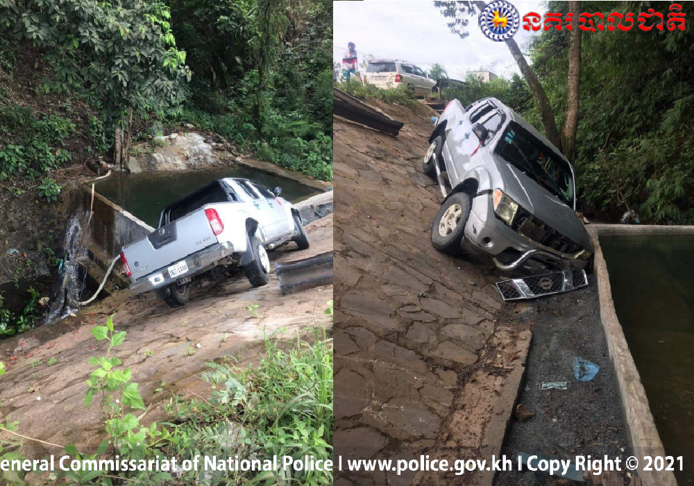 ប្រភេទរថយន្តម៉ាក Nissan Frontier ពណ៌ទឹកប្រាក់ ស្លាកលេខភ្នំពេញ 2BJ-1350 អ្នកបើកបរមិនស្គាល់អត្តសញ្ញាណ មុនកេីតហេតុសាក្សីបានឃេីញរថយន្ដខាងលេីបើកបរពីទិសខាងលិចទៅទិសខាងកើត លុះមកដល់ចំណុចខាងលើបានរេចង្កូតរួចបណ្ដាលឱ្យធ្លាក់ផ្លូវ ក្រោយហេតុការណ៍អ្នកបេីកបរមិនមានរងរបួសអ្វីនោះទេ (មនុស្សប្រុសតែម្នាក់ឯង) បានដេីរឡេីងមកលេីថ្នល់ថារង់ចាំបងប្អូនមកតាមក្រោយរួចបាត់ខ្លួន ពេលសមត្ថកិច្ចមកដល់ទីតាំងកេីតហេតុ ដោយការរង់ចាំអស់រយៈពេលមួយយប់មិនឃេីញម្ចាស់រថយន្ដមកវិញ នៅរសៀលថៃ្ងទី០៧ ខែតុលា ឆ្នាំ២០២១ សមត្ថកិច្ចនគរបាលសណ្ដាប់ធ្នាប់ នៃអធិការដ្ឋាននគរបាលស្រុកភ្នំស្រួច (លោកវរសេនីយ៍ទោ ពៅ នឿន អធិការរងស្រុកភ្នំស្រួច បានសុំគោលការណ៍យោបល់ថ្នាក់ដឹកនាំស្ទួចយករថយន្ដខាងលេីមករក្សាទុកបណ្ដោះអាសន្ននៅអធិការដ្ឋាននគរបាលស្រុកភ្នំស្រួច)។