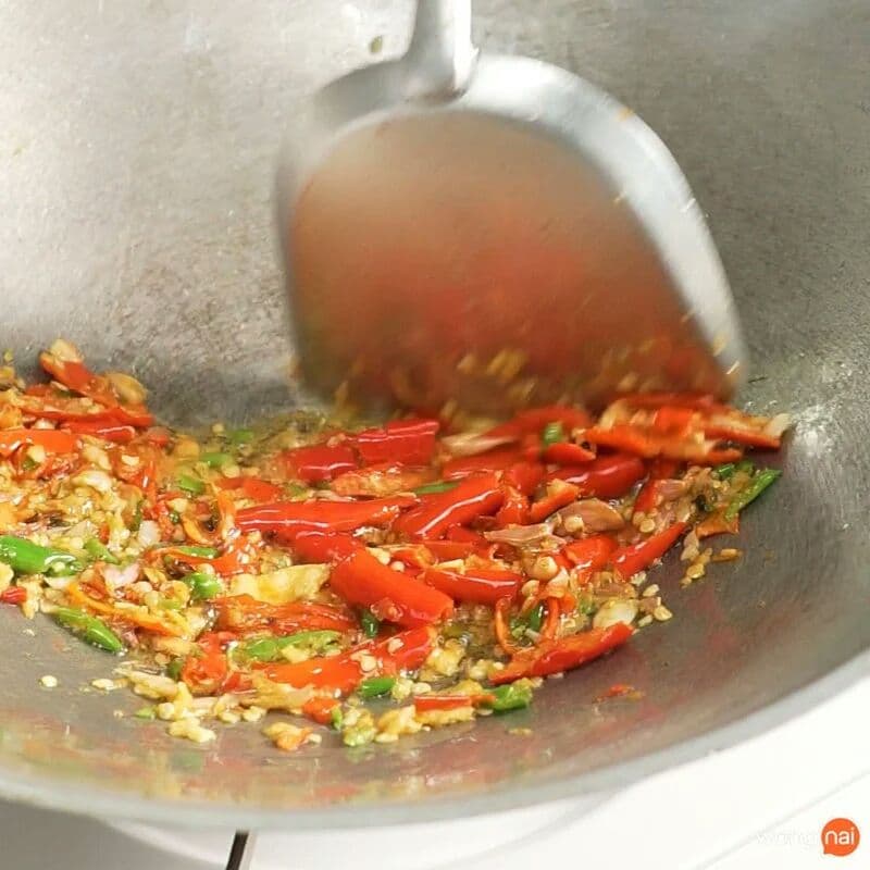 • ក្រោយមកទៀតយើងយកប្រេងឆាចាក់ចូលខ្ទះ រួចចាក់ម្ទេសខ្ទឹមដែលបុកដាក់ចូលទៅលីងអោយឈ្ងុយនិងលឿងល្អ ក្រោយមកទៀតដាក់ខ្យងជំពូកទាចូលទៅឆាអោយចូលគ្នាល្អ រួចផ្សំរសជាតិ ប្រេងខ្យង ទឹកត្រី ស្ករស ឆាអោយចូលគ្នា ល្អ រួចដាក់ស្លឹកម្រះព្រៅ ចូលទៅឆាមួយត្រឡប់រួចបិតភ្លើងដួសដាក់ចានជាការស្រេច។