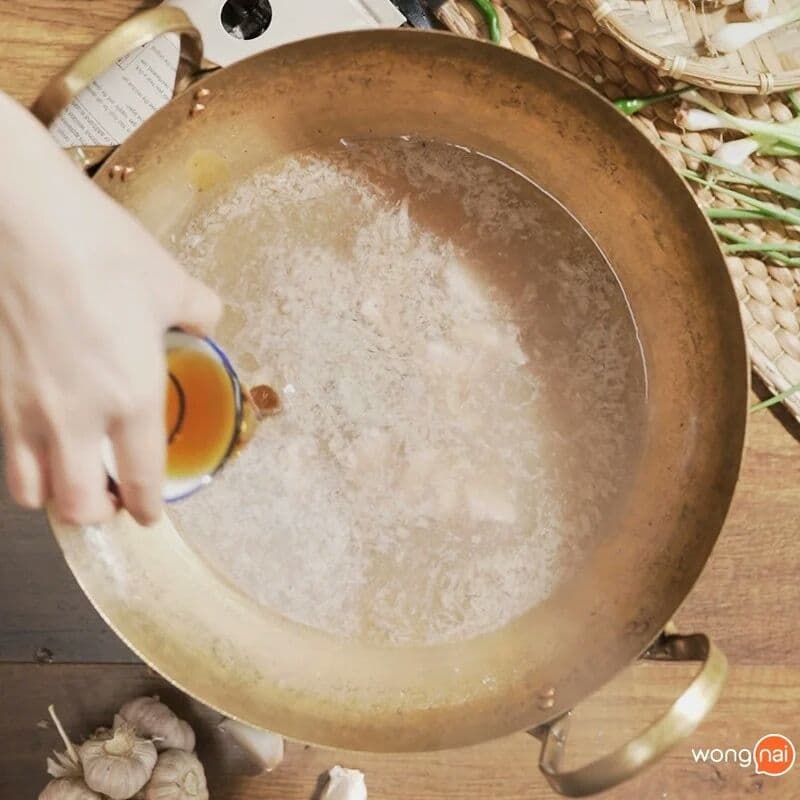 • យកទឹកស៊ុបចាក់ចូលឆ្នាំងអោយពុះរួចដាក់គ្រឿងដែលបានបុកមុននេះចូលទៅ រង់ចាំអោយពុះ រួចដាក់សាច់ជ្រូកបីជាន់ បង្គា ផ្សំរសជាតិដោយ ស្ករ ទឹកត្រី និងទឹកអំពិលទុំរងចាំអោយពុះ ភ្លក់រសជាតិតាមចំណូលចិត្ត រួចដាក់សាច់ត្រីកន្ធរដែលបានចៀនឆ្អិនចូលទៅ រងចាំអោយពុះដាក់ខ្លឹកខ្ទឹម បិតភ្លើងដួសដាក់ចានជាការស្រេច។