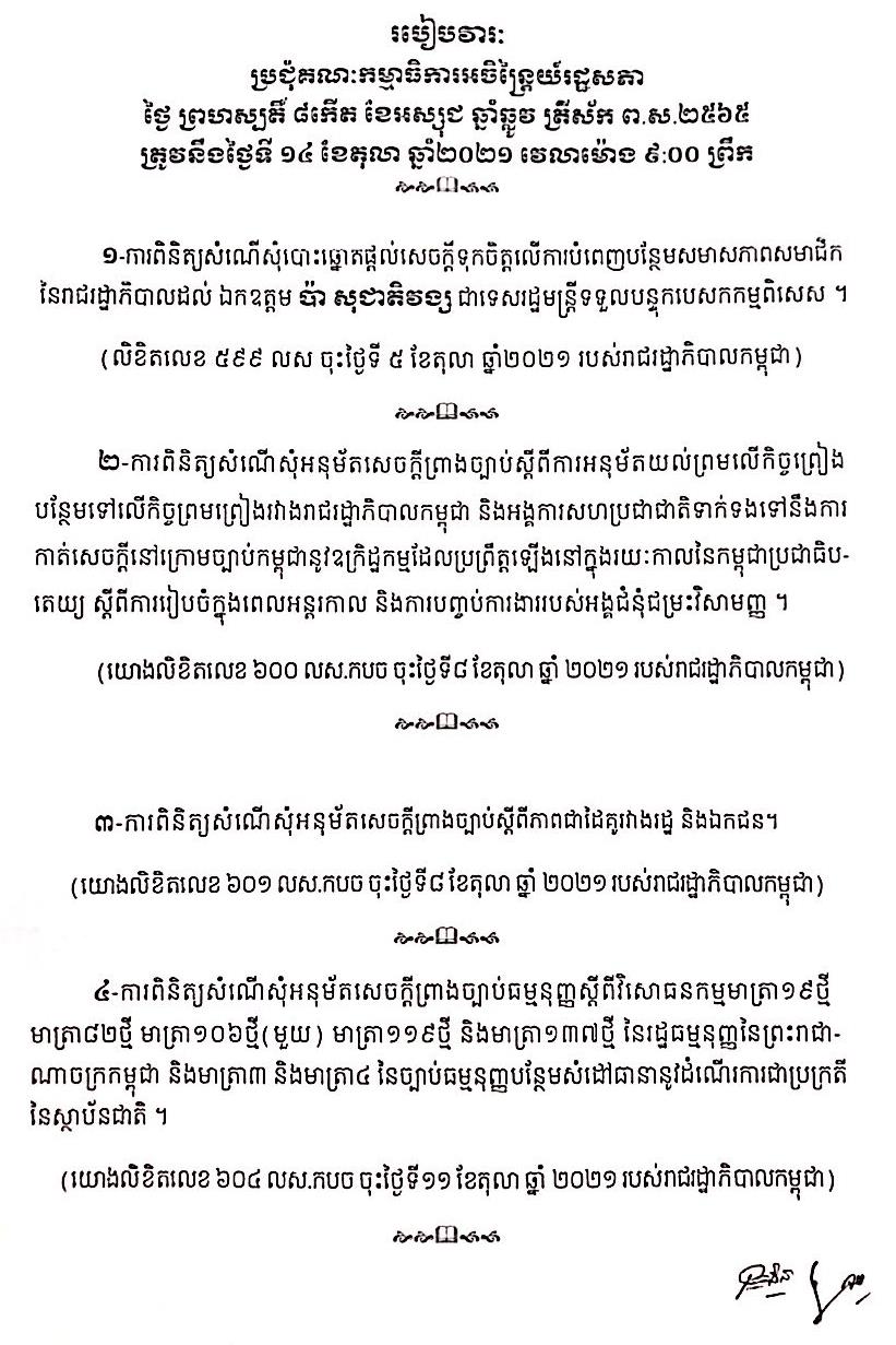 លោក ប៉ា សុជាតិវង្ស អតីអភិបាលរាជធានីភ្នំពេញ និងបច្ចុប្បន្នគឺជាប្រធានក្រុមប្រឹក្សារាជធានីភ្នំពេញ ត្រូវបានរាជរដ្ឋាភិបាល ស្នើទៅកាន់រដ្ឋសភា ដើម្បីបោះឆ្នោតផ្តល់សេចក្តីទុកចិត្ត ក្នុងនាមជាសមាជិកនៃរាជរដ្ឋាភិបាល ដែលមានឋានៈជាជាទេសរដ្ឋមន្រ្តី ទទួលបន្ទុកបេសកកម្មពិសេស ដោយសំណើនេះត្រូវបានអនុម័តយល់ព្រម រង់ចាំតែថ្ងៃបើកកិច្ចប្រជុំពេញអង្គដើម្បីបោះឆ្នោតតែប៉ុណ្ណោះ។