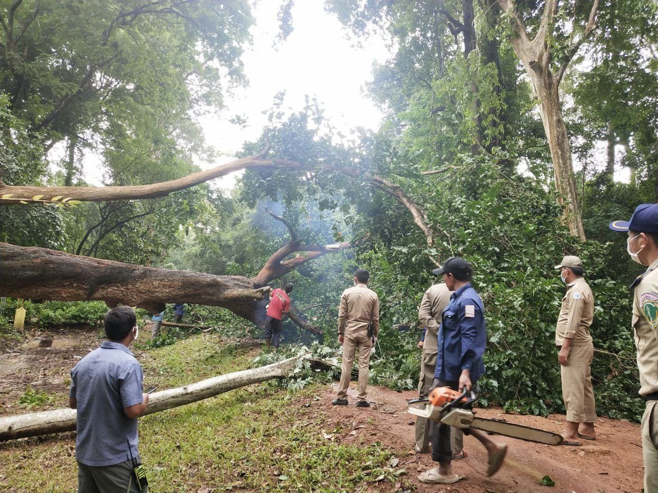 លោក ជូ រ៉ាឌីណា អនុប្រធាននាយកដ្ឋានគ្រប់គ្រងព្រៃឈើ ទេសភាពវប្បធម៌ និងបរិស្ថាន នៃអាជ្ញាធរជាតិអប្សរា មានប្រសាសន៍ថា នៅក្នុងខែវស្សាឆ្នាំនេះ ក៏ដូចជាឆ្នាំមុនៗ បញ្ហាអាកាសធាតុបង្កឱ្យដើមឈើតូចធំមួយចំនួនក្នុងតំបន់ប្រាសាទ ដួលរលំ និងបាក់មែក ដែលទាមទារឱ្យក្រុមការងារធ្វើការជាបន្ទាន់។ ក្រៅពីនេះ ដើមឈើហានិភ័យខ្លះ ដែលដុះគៀកប្រាសាទ ហើយអាចបង្កគ្រោះថ្នាក់ជាយថាហេតុណាមួយ ក៏ត្រូវបានអនុវត្តឱ្យបានទាន់ពេលវេលាផងដែរ ៕