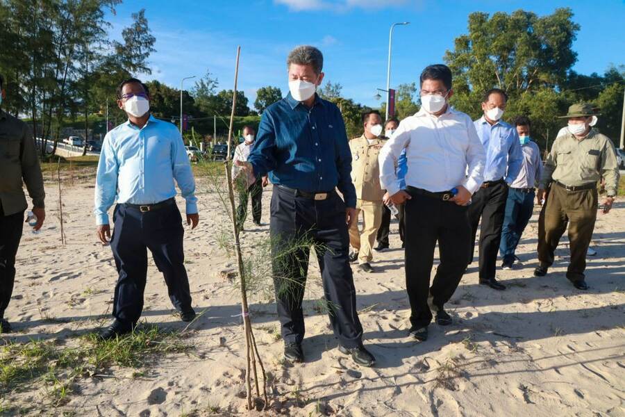 ទន្ទឹមនឹងនេះ ឯកឧត្តម អភិបាលខេត្ត ក៏ណែនាំឱ្យក្រុមការងារកាយយកគល់ឈើ មែកឈើ និងដុំថ្មចេញឱ្យអស់នៅតាមបណ្តោយឆ្នេរ និងធ្វើការឈូសឆាយខ្សាច់ឱ្យបានរាបស្មើ ដើម្បីលើកស្ទួយសោភ័ណភាពឆ្នេរខ្សាច់ និងសម្រាប់ត្រៀមបើកទេសចរ និងសេដ្ឋកិច្ចសង្គមឡើងវិញនៅចុងឆ្នាំ២០២១នេះ បន្ទាប់ពីជំងឺកូវីដ-១៩ បានធូរស្រាលជាបន្តបន្ទាប់។ ឯកឧត្តមក៏បានបន្តដំណើរទៅពិនិត្យមើលបន្ទប់ទឹកសាធារណៈនៅតាមឆ្នេរ និងមើលសកម្មភាពដាំកូនស្ងាវ ដើម្បីលម្អនៅតាមបណ្តោយឆ្នេរ កាន់តែមានសោភ័ណភាពបន្ថែមទៀត ៕