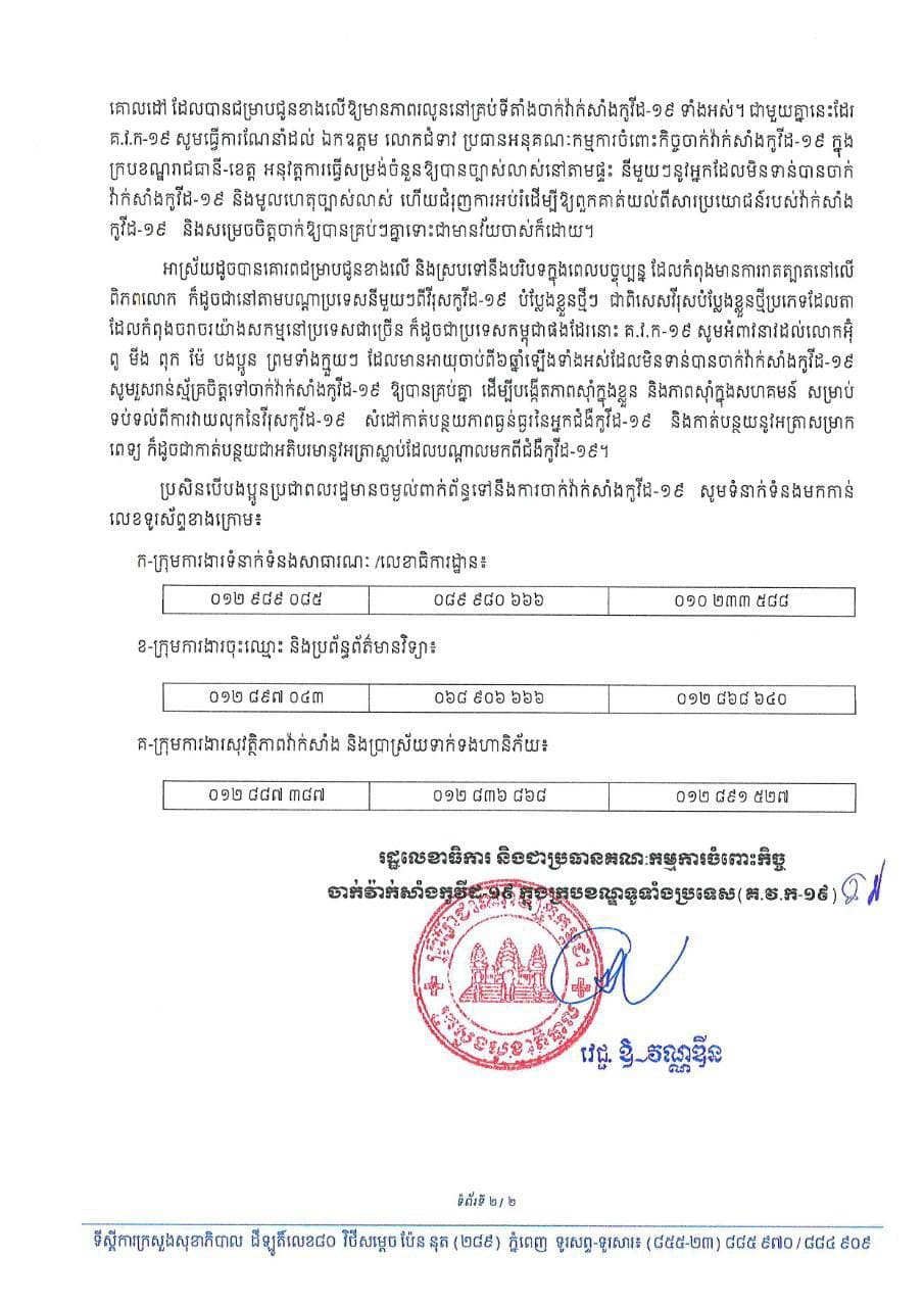 សូមអានសេចក្ដីជូនដំណឹងរបស់ ក្រសួងសុខាភិបាល លម្អិតដូចខាងក្រោម៖