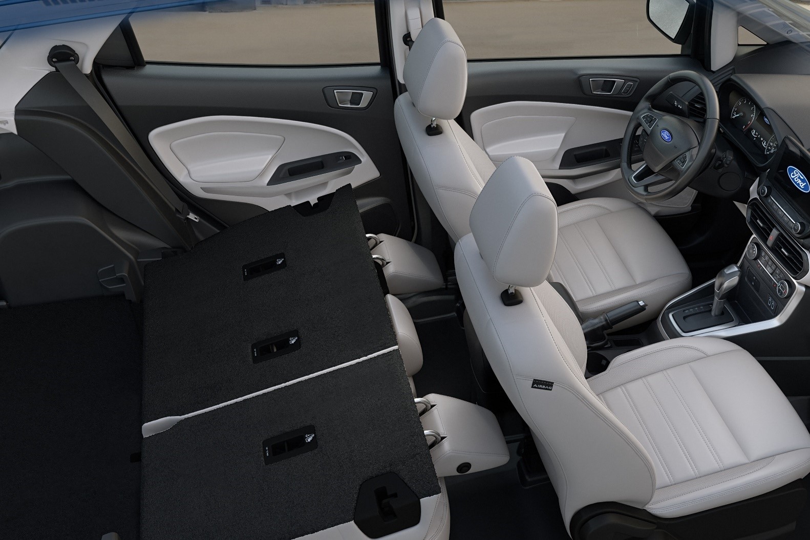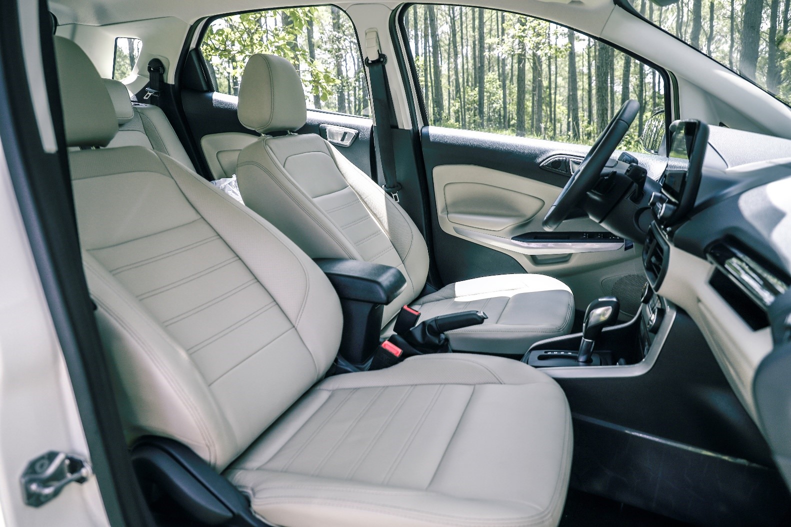 5. ការប្រើប្រាស់ស្បែកទន់បែបប្រណិតនៅលើកៅអី ដែលមានជម្រើស 2 ពណ៍ដូចជាពណ៍ទឹកដោះគោ និងពណ៍ខ្មៅ។ កៅអីរបស់រថយន្ដនេះគឺប្រណិត និងមានផាសុកភាពមែនទែន។ ចំពោះរថយន្ដមួយចំនួនគឺកៅអីរបស់គេមិនធ្វើអំពីស្បែកនោះទេ គឺធ្វើអំពីក្រណាត់ពូកធម្មតាដែលងាយនឹងជក់ទឹក ឬបែកញើសពេលយើងបើកបរយូរ ហើយធ្វើឲ្យមានក្លិនមិនល្អថែមទៀតផង តែដោយឡែក Ford EcoSport កៅអីធ្វើឡើងពីស្បែកសុទ្ធដែលធ្វើឲ្យការបើកបរមានផាសុកភាព។