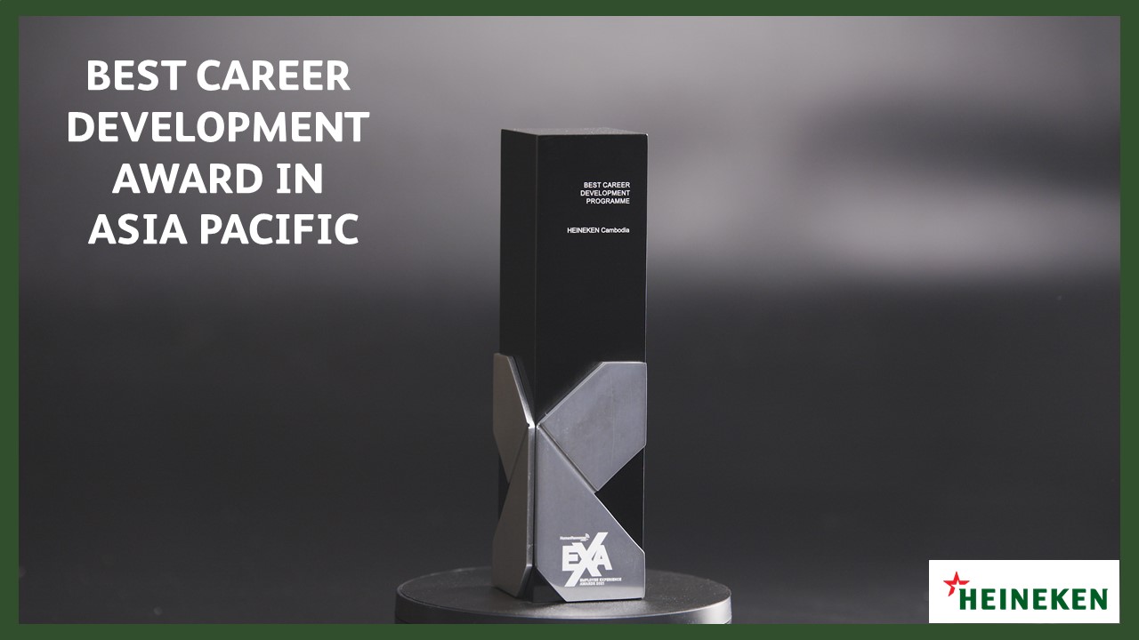 ក្រុមហ៊ុន HEINEKEN Cambodia ត្រូវបានប្រកាសថាជាអ្នកឈ្នះពានរង្វានប្រាក់ Employee Experience Awards 2021 ក្នុងផ្នែកអភិវឌ្ឍន៍អាជីពល្អបំផុត។ ពានរង្វាន់នេះមានន័យថាជាការទទួលស្គាល់ការប្តេជ្ញាចិត្តរបស់ក្រុមហ៊ុនផលិតស្រាបៀរមួយនេះចំពោះឱកាសអភិវឌ្ឍន៍អាជីពដែលក្រុមហ៊ុនផ្តល់ជូននិយោជិតរបស់ខ្លួន “តាមរយៈការតម្រឹមអាជីវកម្មដ៏ខ្លាំង ការប្តេជ្ញាចិត្តយ៉ាងខ្លាំងក្លាចំពោះការអភិវឌ្ឍន៍វិជ្ជាជីវៈរបស់និយោជិត និងភាពម្ចាស់ការក្នុងការរៀបចំផែនការសម្រាប់ជំនាញអនាគត”។ ក្រុមហ៊ុន HEINEKEN Cambodia ក៏ទទួលបានការកោតសរសើរផងដែរចំពោះការចូលរួមរបស់និយោជិត និងយុទ្ធសាស្រ្តជម្រុះ និងបរិយាបន្ន (Diversity and Inclusion Strategy) របស់ក្រុមហ៊ុន។