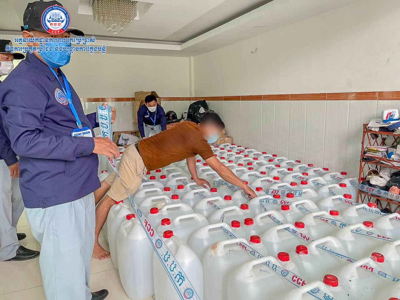 រាជធានីភ្នំពេញ៖ យោងតាមការចុះផ្សាយរបស់ អគ្គ.ការពារអ្នកប្រើប្រាស់ កិច្ចការប្រកួតប្រជែង និងបង្ក្រាបការក្លែងបន្លំ បានឲ្យដឹងថា នៅថ្ងៃចន្ទ ៤រោច ខែអស្សុជ ឆ្នាំឆ្លូវ ត្រីស័ក ព.ស.២៥៦៥ ត្រូវនឹងថ្ងៃទី២៥ ខែតុលា ឆ្នាំ២០២១ មន្ត្រីជំនាញ សាខា ក.ប.ប. រាជធានីភំ្នពេញ បានចុះប្រតិបត្តិការ ត្រួតពិនិត្យជាក់ស្តែង នៅទីតាំងផ្ទះដែលមានស្តុកទុកលក់ និងចែកចាយអាល់កុលមួយកន្លែង ដែលមានទីតាំងស្ថិតនៅសង្កាត់ចោមចៅ ខណ្ឌពោធិ៍សែនជ័យ ដើម្បីធានាបាននូវការការពារផលប្រយោជន៍ប្រជាពលរដ្ឋ ក៏ដូចជាសុខភាពរបស់ប្រជាពលរដ្ឋផងដែរ។
