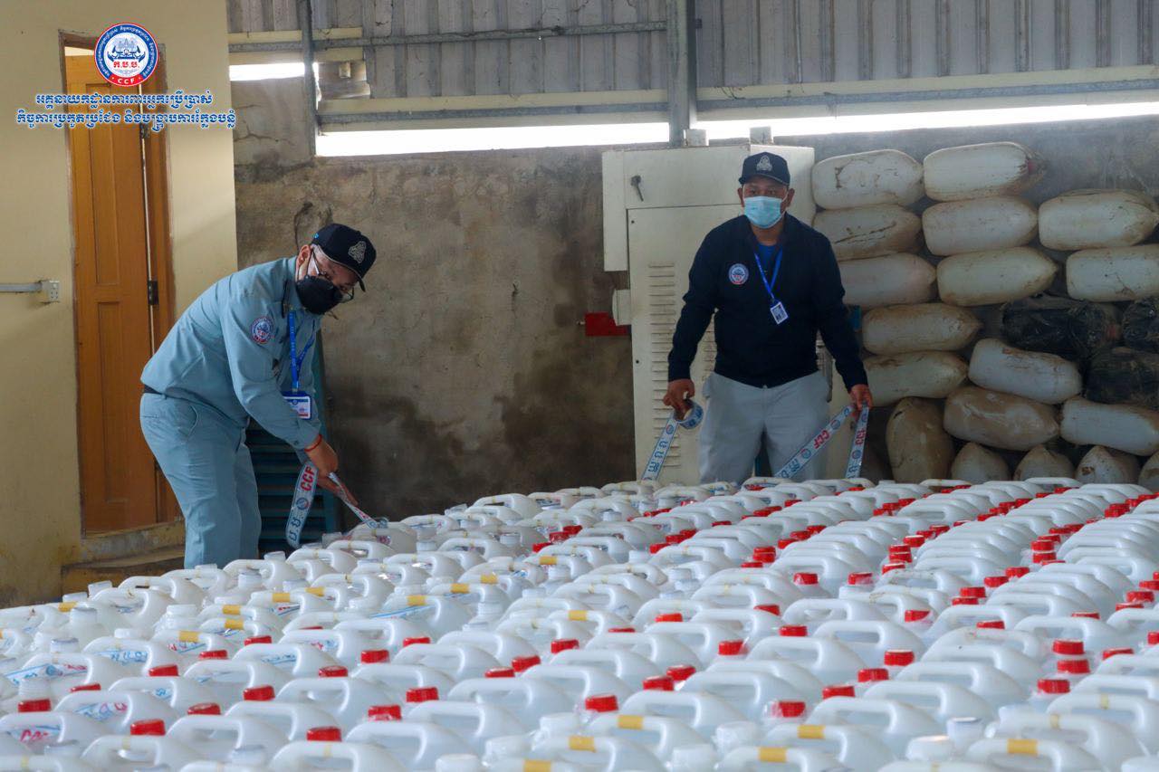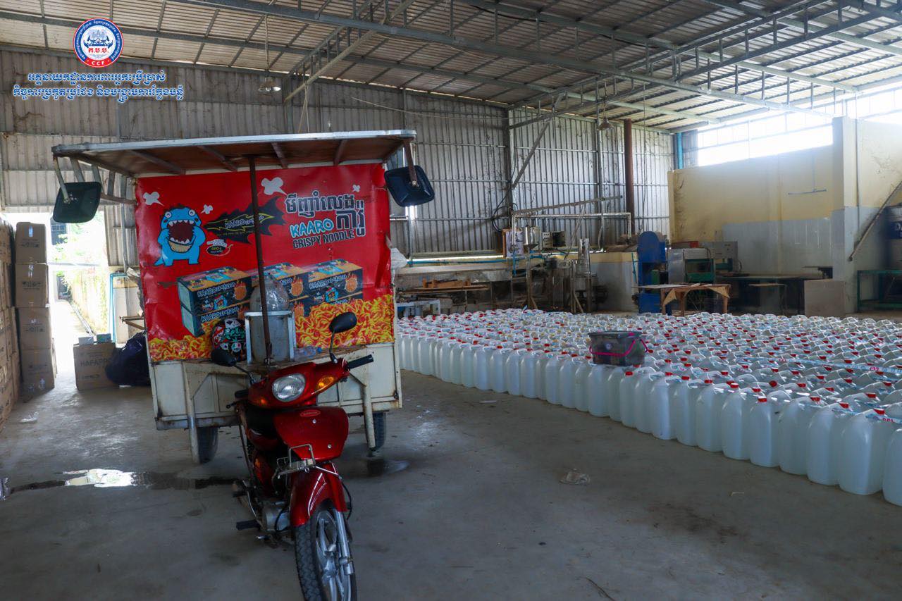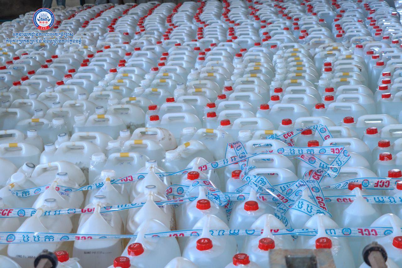 (រាជធានីភ្នំពេញ)៖ យោងតាមការចុះផ្សាយរបស់ អគ្គ.ការពារអ្នកប្រើប្រាស់ កិច្ចការប្រកួតប្រជែង និងបង្ក្រាបការក្លែងបន្លំ បានឲ្យដឹងថា នៅថ្ងៃទី២៥ ខែតុលា ឆ្នាំ២០២១ មន្រ្តីស៊ើបអង្កេតរបស់អគ្គនាយកដ្ឋាន ក.ប.ប. បានចុះប្រតិបត្តិការត្រួតពិនិត្យគុណភាពអាល់កុល នៅទីតាំងមួយកន្លែង ក្នុងភូមិសាស្ត្រខណ្ឌពោធិ៍សែនជ័យ រាជធានីភ្នំពេញ។ ប្រតិបត្តិការនេះ បានធ្វើឡើងបន្ទាប់ពីមន្រ្តីជំនាញបានធ្វើការស្រាវវជ្រាវរកឃើញថា ទីតាំងនេះមានស្តុកទុក ដើម្បីចែកចាយលក់អាល់កុលនៅតាមបណ្តាទីផ្សារនៅទូទាំងប្រទេស។ បន្ទាប់ពីបានត្រួតពិនិត្យ មន្រ្តីជំនាញបានរកឃើញអាល់កុលក្លែងក្លាយ(មេតាណុល) ចំនួន ១៥៧ប៊ីដុង ស្មើនឹង៤ ៧១០លីត្រ នៅទីតាំងផ្ទះមួយកន្លែងស្ថិតនៅក្នុងសង្កាត់ចោមចៅ ខណ្ឌពោធិ៍សែនជ័យ រាជធានីភ្នំពេញ។