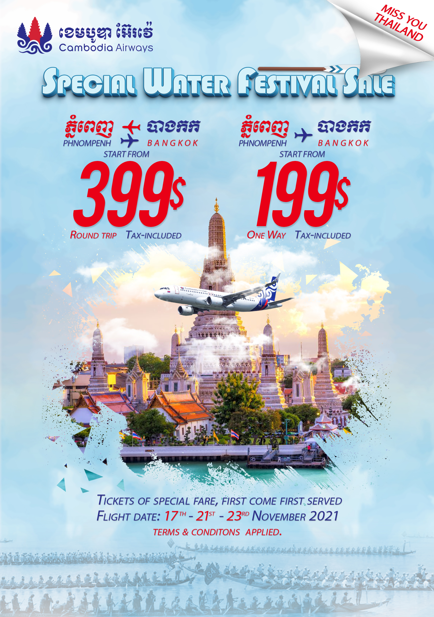Cambodia Airways To Launch Its “Miss you” Special Flight to Bangkok on Water Festival
