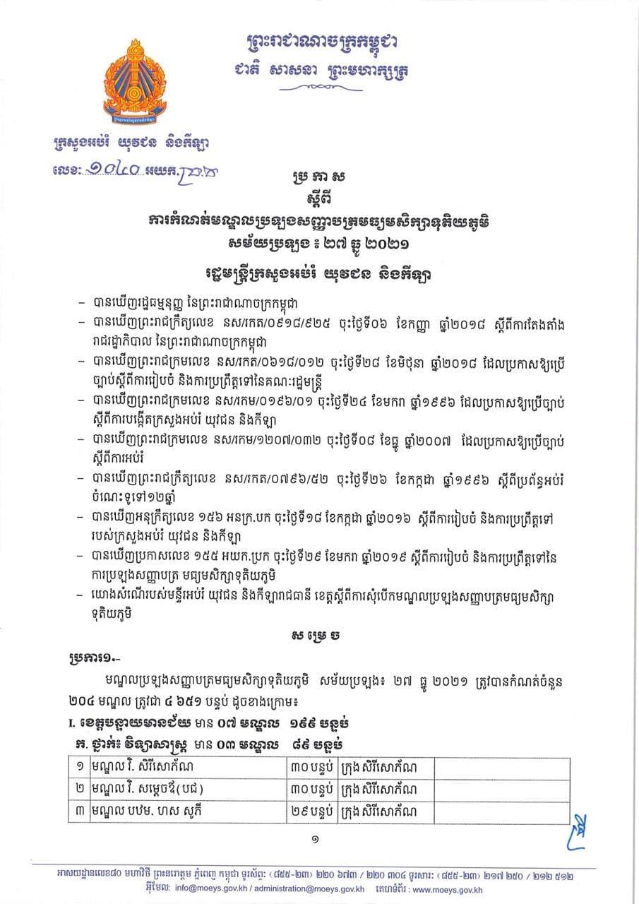 សូមអានសេចក្ដីប្រកាសលម្អិតរបស់ ក្រសួងអប់រំ ដូចខាងក្រោម៖