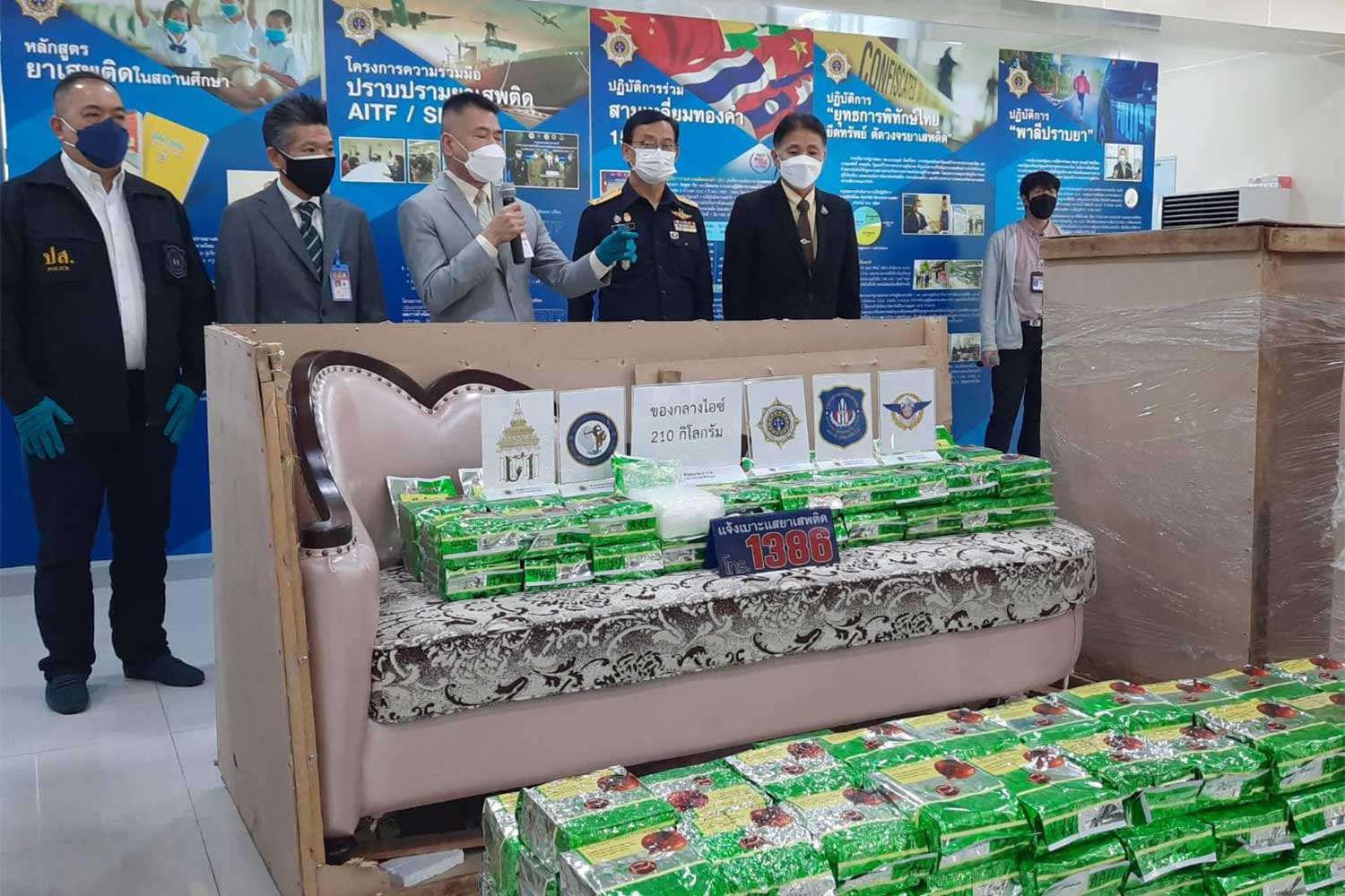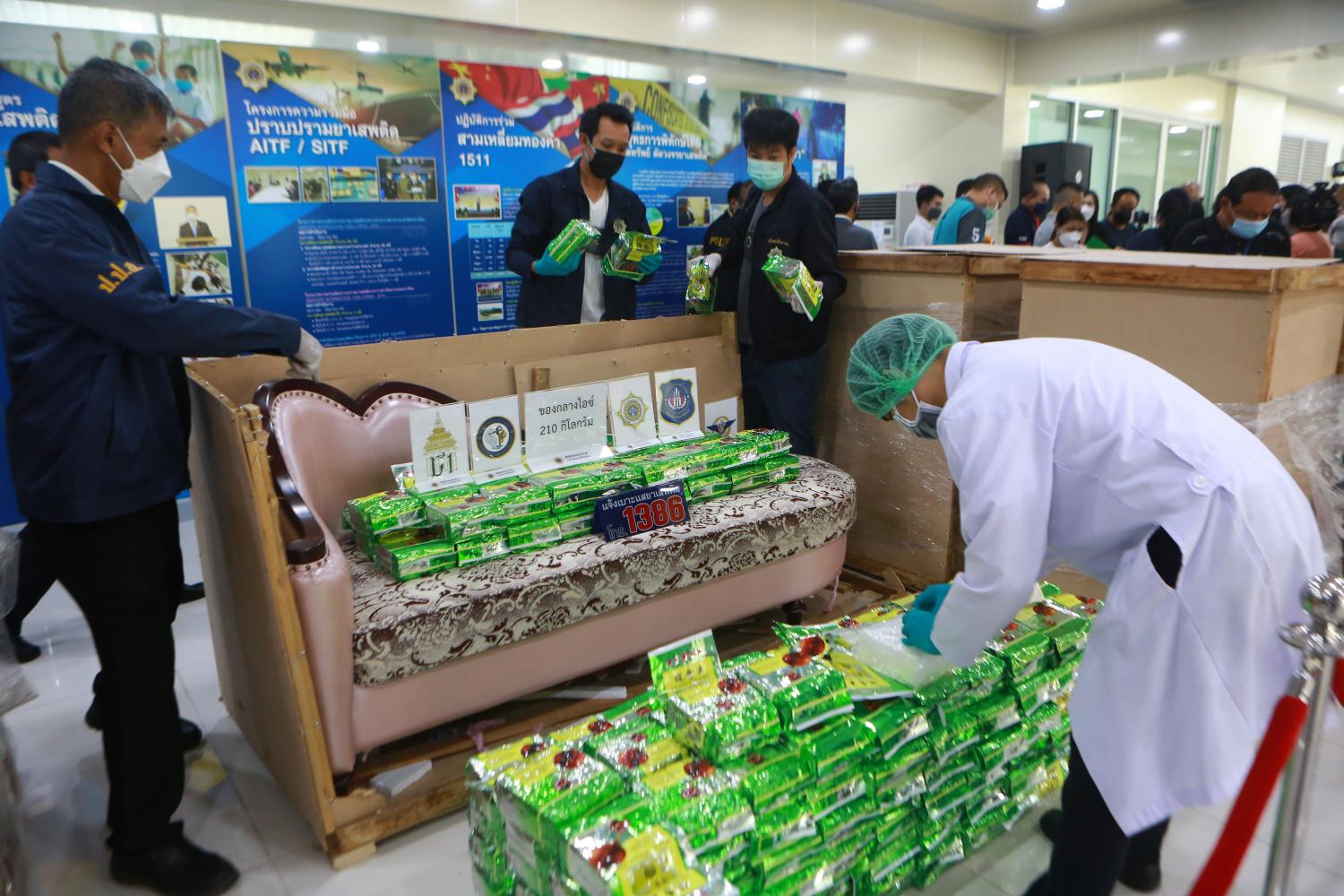 ស្រ្តីម្នាក់ត្រូវចាប់ខ្លួននៅទីក្រុងបាងកកពាក់ព័ន្ធករណីរត់ពន្ធគ្រឿងញៀន ២១០ គីឡូក្រាមដោយបង្កប់នៅក្នុងសាឡុងដើម្បីផ្ញើទៅកាន់ម៉ាឡេស៊ី