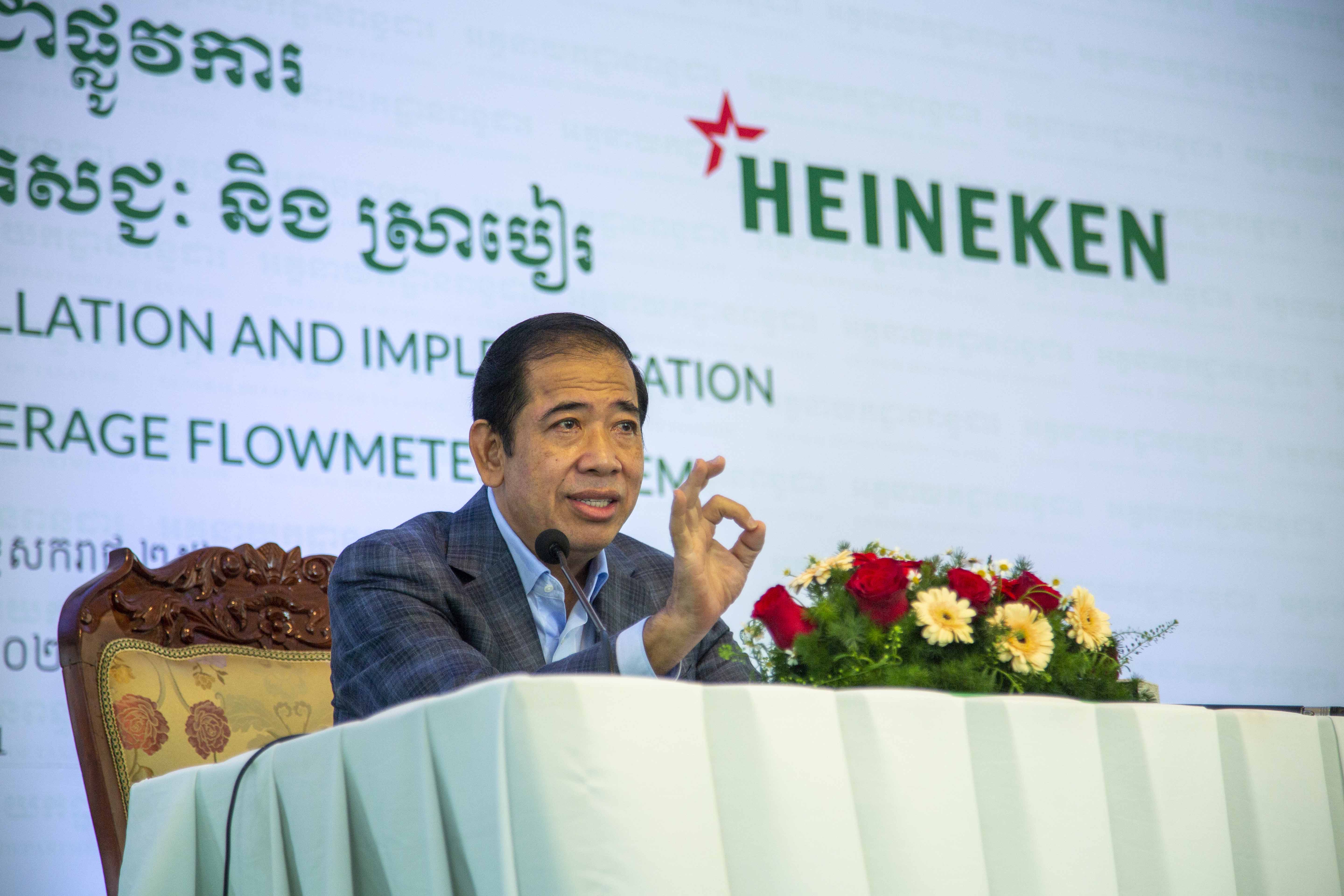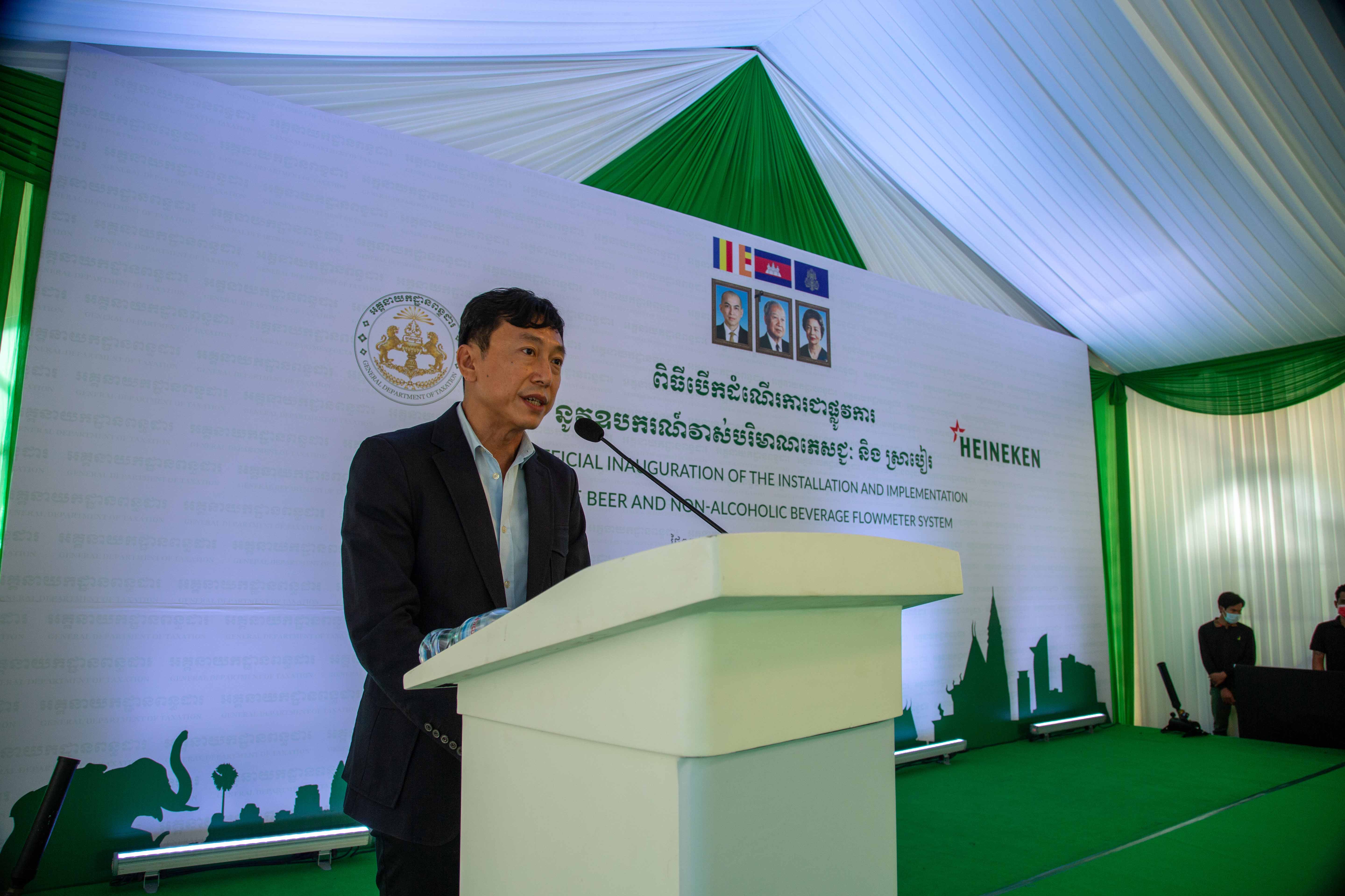 ក្នុងឱកាសនេះ ឯកឧត្តមរដ្ឋមន្ត្រីប្រតិភូអមនាយករដ្ឋមន្ត្រីបានថ្លែងកោតសរសើរចំពោះក្រុមហ៊ុន HEINEKEN (Cambodia) Co., Ltd., ដែលជាសហគ្រាសមួយមានអនុលោមភាពសារពើពន្ធខ្ពស់ និងជាក្រុមហ៊ុនដែលបានស្ម័គ្រចិត្តចូលរួមសហការ និងបានបំពាក់ឧបករណ៍វាស់ចំណុះនេះមុនគេ ហើយព្រមទាំងទទួលបានការកោតសរសើរពីសំណាក់ប្រមុខរដ្ឋាភិបាលដែលតាមរយៈលិខិតចុះថ្ងៃទី០៨ ខែវិច្ឆិកា ឆ្នាំ២០២១ សម្តេចអគ្គមហាសេនាបតីតេជោ ហ៊ុន សែន នាយករដ្ឋមន្ត្រីនៃព្រះរាជាណាចក្រកម្ពុជា បានថ្លែងអំណរគុណនិងកោតសរសើរចំពោះក្រុមហ៊ុន ដែលបានចូលរួមចំណែកក្នុងការបំពេញកាតព្វកិច្ចពន្ធដារផ្ទៃក្នុង ជាពិសេស ១.បានបង់ពន្ធជូនរដ្ឋច្រើនជាងគេលំដាប់ទី១ ក្នុងវិស័យផលិតស្រាបៀរ និងភេសជ្ជៈគ្មានជាតិសុរា ២.មានអនុលោមភាពសារពើពន្ធខ្ពស់ប្រភេទ “មាស” និង ៣.ជាក្រុមហ៊ុនដំបូង និងឈានមុខគេក្នុងវិស័យផលិតស្រាបៀរ និងភេសជ្ជៈគ្មានជាតិសុរាក្នុងស្រុក ដែលបានស្ម័គ្រចិត្តក្នុងការចូលរួមសហការដំឡើង និងប្រើប្រាស់ឧបករណ៍វាស់ចំណុះ ស្របតាមការសម្រេចរបស់រាជរដ្ឋាភិបាល។ គួរបញ្ជាក់ថា បើទោះជាស្ថិតក្នុងស្ថានភាពដ៏លំបាកដោយសារការរីករាលដាលខ្លាំងនៃជំងឺកូវីដ-១៩ នេះក៏ដោយ ក៏លទ្ធផលនៃការប្រមូលចំណូលពន្ធដារអាចនៅមានស្ថានភាពល្អប្រសើរ ដែលនេះគឺដោយសារមានការយកចិត្តទុកដាក់ខ្ពស់ពីសំណាក់សម្តេចតេជោនាយករដ្ឋមន្ត្រី និងក្រសួងសេដ្ឋកិច្ច និងហិរញ្ញវត្ថុ ជាពិសេសការចាត់វិធានការជាយុទ្ធសាស្រ្តក្នុងការចាក់វ៉ាក់សាំងជូនប្រជាពលរដ្ឋកម្ពុជា ប្រកបដោយស្មារតីបុរេសកម្ម និងទាន់ពេលវេលា ដែលអាចធ្វើឱ្យប្រទេសកម្ពុជាអាចបើកដំណើរការសេដ្ឋកិច្ចឡើងវិញនៅក្នុងខែវិច្ឆិកានេះ។
