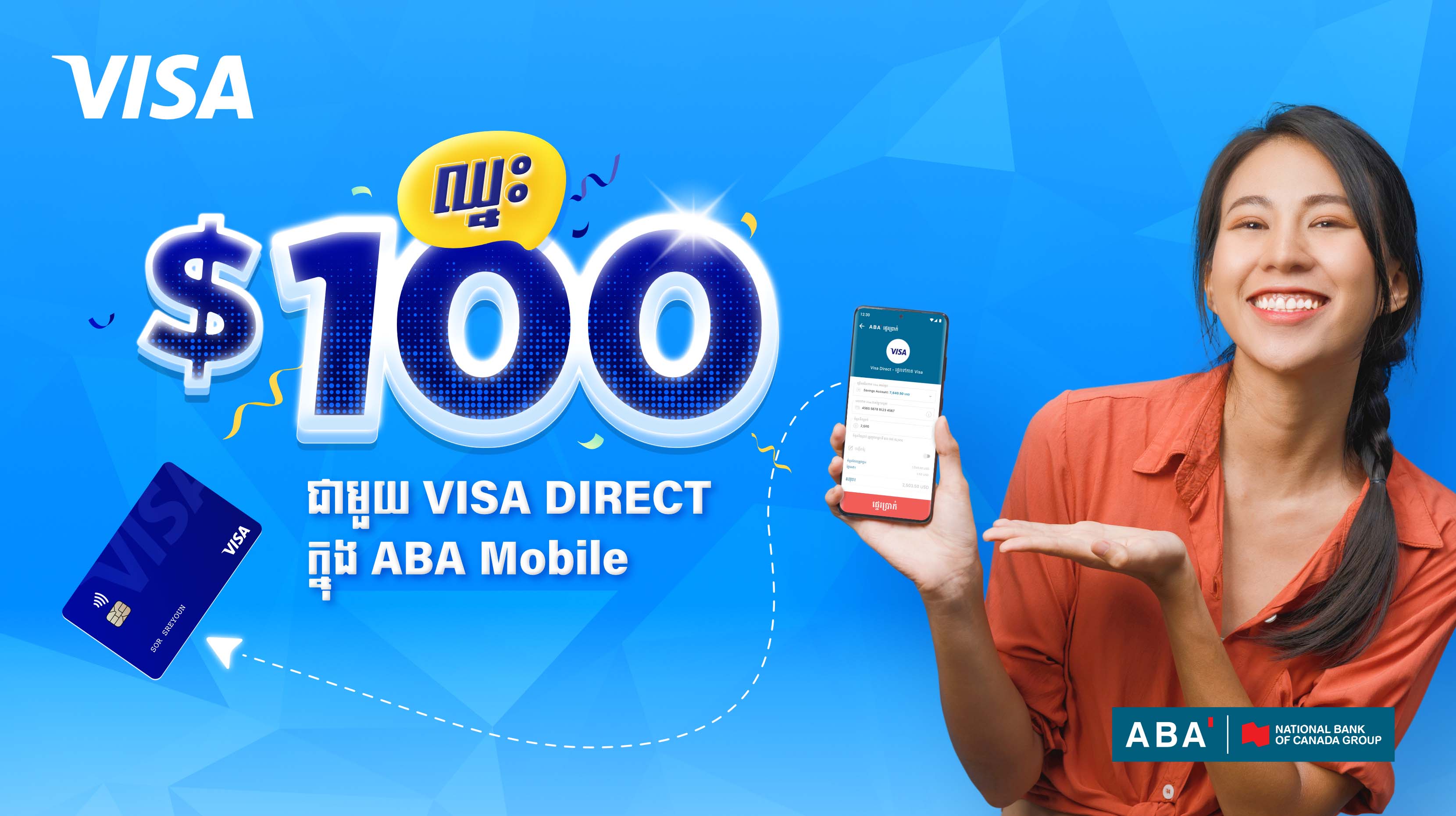 ប្រម៉ូសិន Visa Direct ក្នុង ABA Mobile ត្រឡប់មកវិញជាមួយនឹងរង្វាន់ជាសាច់ប្រាក់ច្រើនជាងមុន!