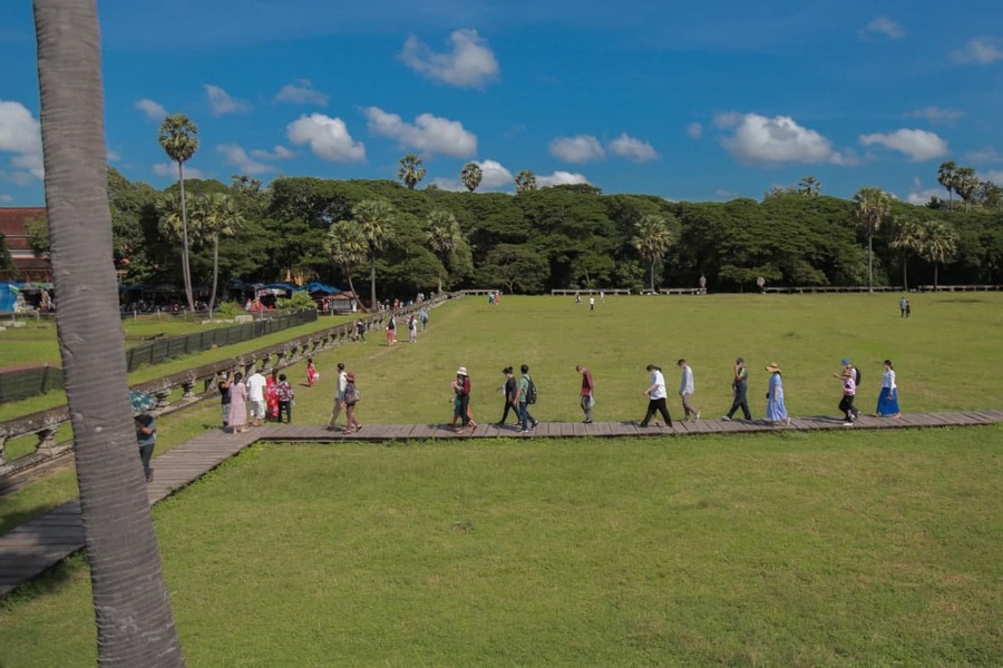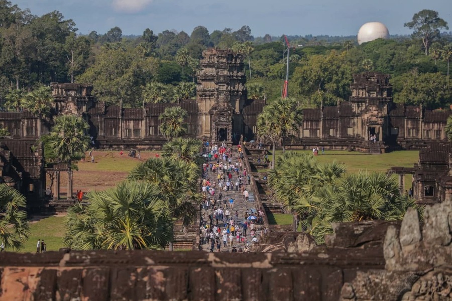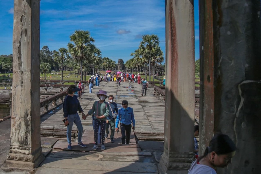 ទិដ្ឋភាពភ្ញៀវទេសចរដ៏ច្រើន បានមកទស្សនាប្រាសាទអង្គរវត្ត នៅថ្ងៃទី២នៃព្រះរាជពិធីបុណ្យអុំទូក ដែលជាទិដ្ឋភាពដ៏កម្រមួយក្នុងរយៈពេល២ឆ្នាំចុងក្រោយនេះ