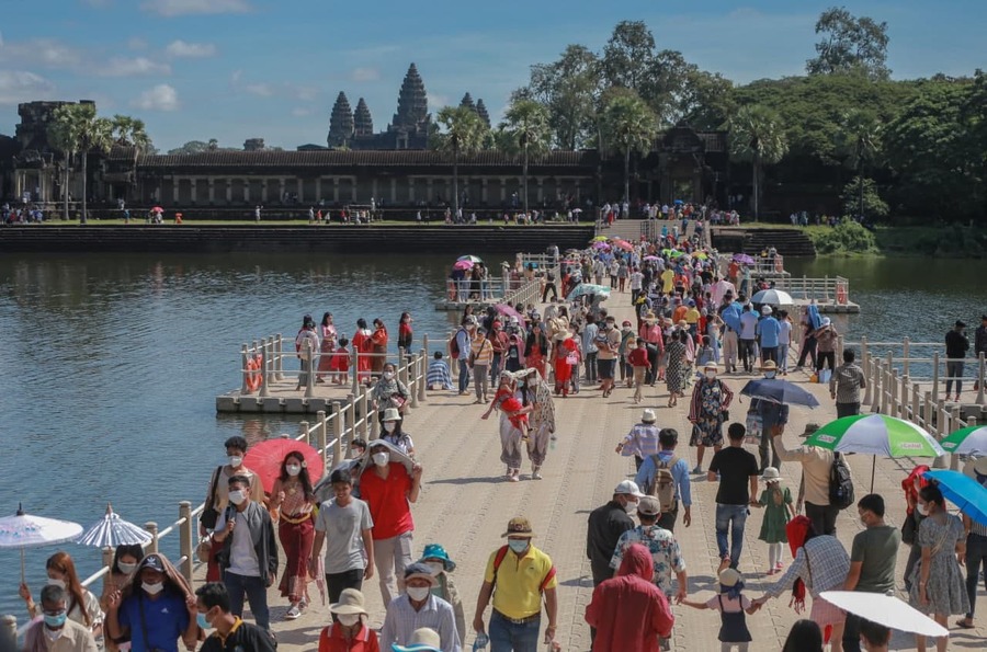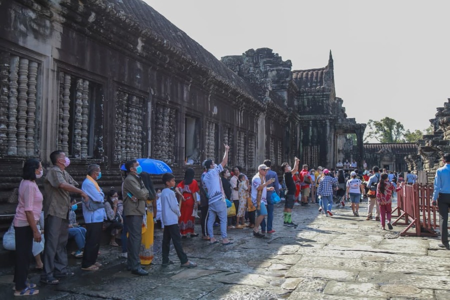ខេត្តសៀមរាប៖ យោងតាមការចុះផ្សាយរបស់ ក្រសួងព័ត៌មាន នៅថ្ងៃទី១៩ ខែវិច្ឆិកា ឆ្នាំ២០២១ បានឲ្យដឹងថា ទិដ្ឋភាពភ្ញៀវជាតិ និងភ្ញៀវទេសចរបរទេស យ៉ាងច្រើនកុះករទៅទស្សនាប្រាសាទអង្គរវត្ត នៅថ្ងៃទី២ នៃព្រះរាជពិធីបុណ្យអុំទូក បណ្តែតប្រទីប និងសំពះព្រះខែ អកអំបុក ត្រូវនឹងថ្ងៃទី១៩ ខែវិច្ឆិកា ឆ្នាំ២០២១ បើតាមការសង្គេតមើលជាក់ស្តែង ឃើញថា ភ្ញៀវទេសចរបានសម្រុកមកលេងប្រាសាទអង្គរវត្ត យ៉ាងច្រើននៅថ្ងៃនេះ។