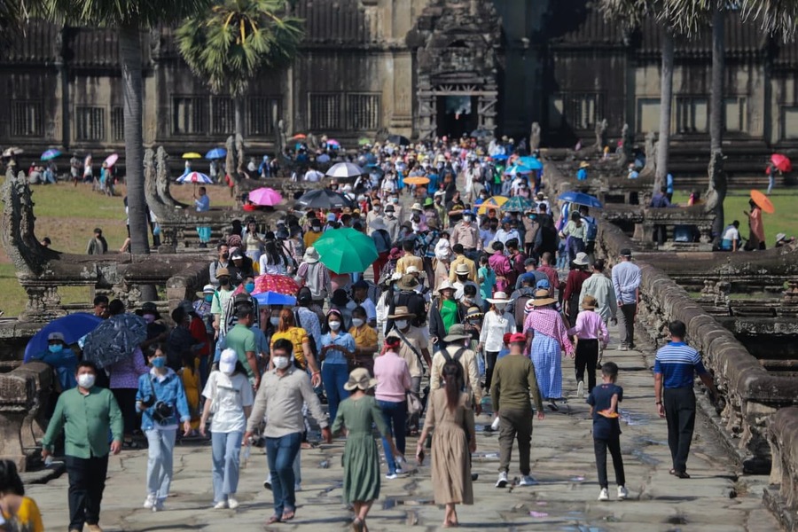 ទាំងនេះគឺជាទិដ្ឋភាពមួយ ដែលកម្រនឹងបានឃើញក្នុងអំឡុងពេល ២ឆ្នាំចុងក្រោយនេះ ដែលមានភ្ញៀវទេសចរមកទស្សនាកម្សាន្ត នៅប្រាសាទអង្គរវត្តដ៏ច្រើនបែបនេះ ៕
