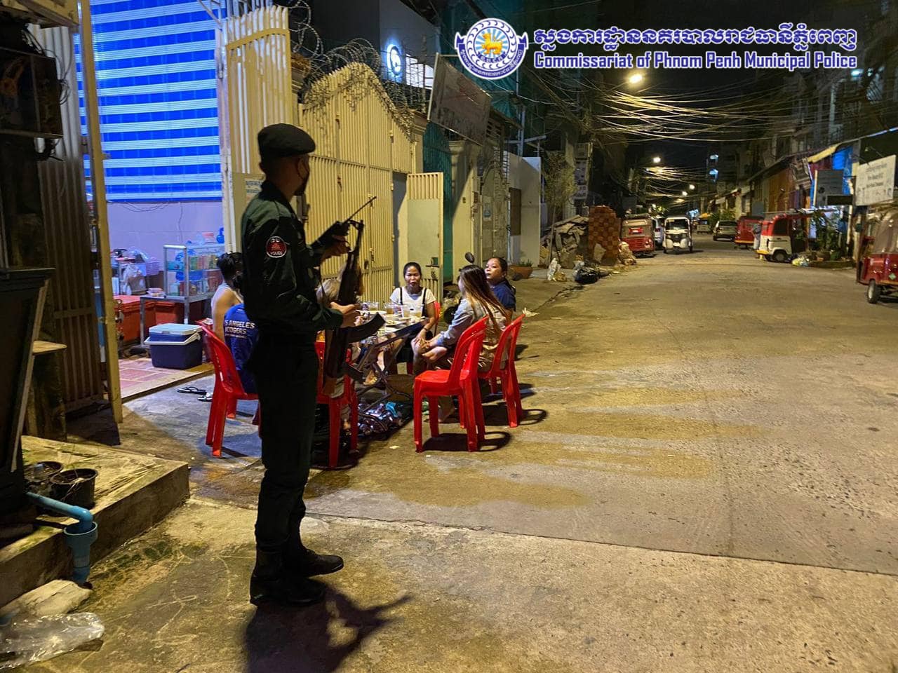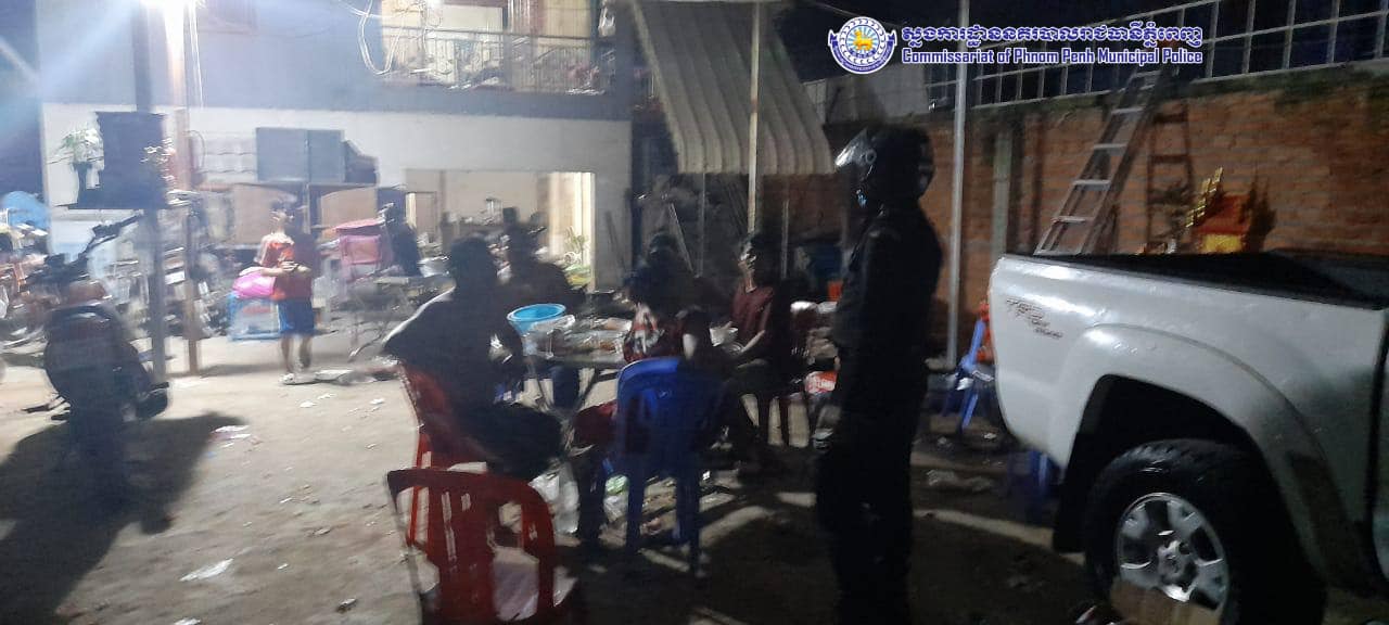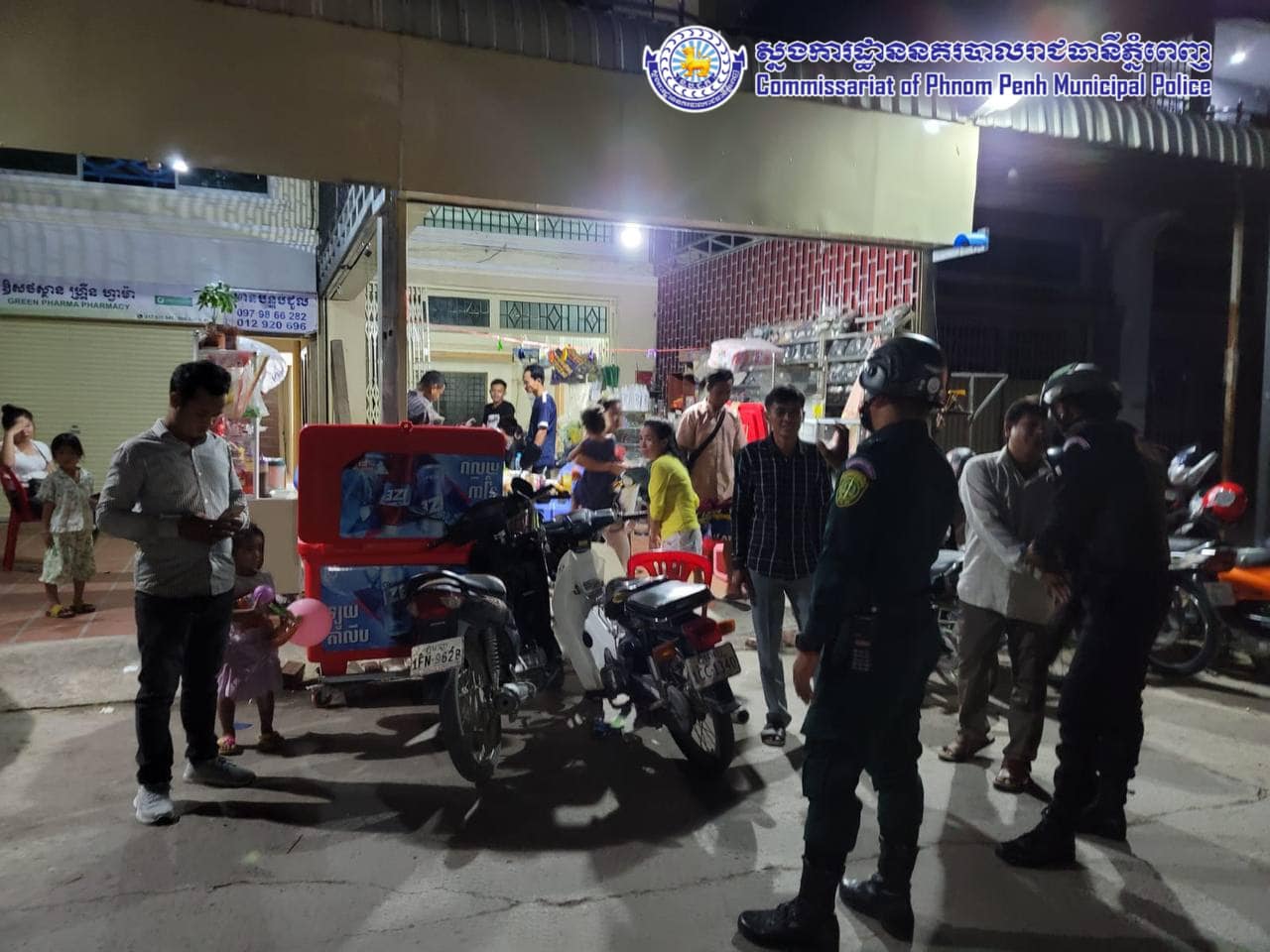 រាជធានីភ្នំពេញ៖ យោងតាមការចុះផ្សាយរបស់ ស្នងការដ្ឋាននគរបាលរាជធានីភ្នំពេញ បានឲ្យដឹងថា នៅយប់ថ្ងៃទី១៩ ខែវិច្ឆិកា ឆ្នាំ២០២១ វេលាម៉ោង ១០៖២០នាទី បន្ទាប់ពីទទួលបានខំមិនពីប្រជាពលរដ្ឋក្នុងផេកស្នងការដ្ឋាននគរបាលរាជធានីភ្នំពេញភ្លាម ទាក់ទងទៅនឹងការជួបជុំផឹកស៊ី ចាក់ធុងបាស់បង្កសម្លេងរំខាន ក្រុមការងារបានផ្តល់ព័ត៌មានដល់តាមបណ្តាអធិការខណ្ឌ និងប៉ុស្តិ៍ ដើម្បីចុះដល់ទីតាំងភ្លាមៗ ដោយបានធ្វើការណែនាំអប់រំ និងបញ្ឈប់សកម្មភាពជួបជុំផឹកស៊ី ចាក់ធុងបាស់ដែលបង្កសម្លេងរំខានដល់អ្នកជិតខាងមិនអាចសម្រាកបាន។