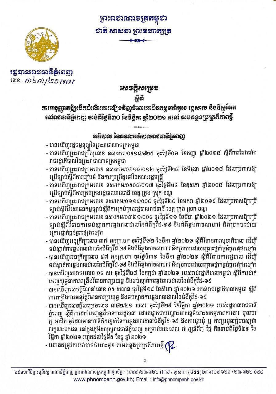 សូមអានសារលិខិតលម្អិតរបស់ រដ្ឋបាលរាជធានីភ្នំពេញ ដូចខាងក្រោម៖
