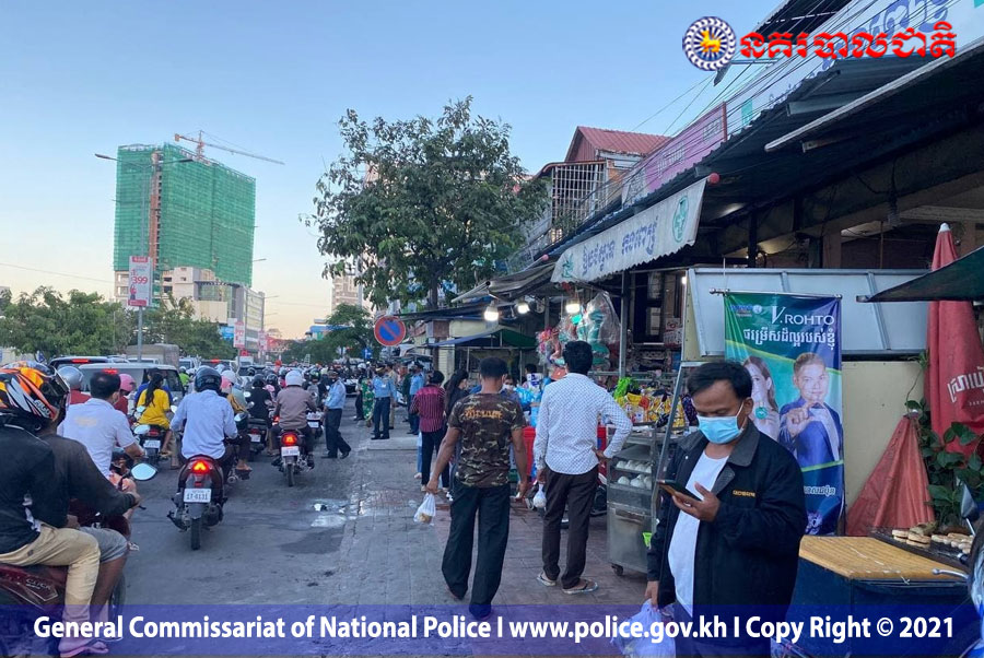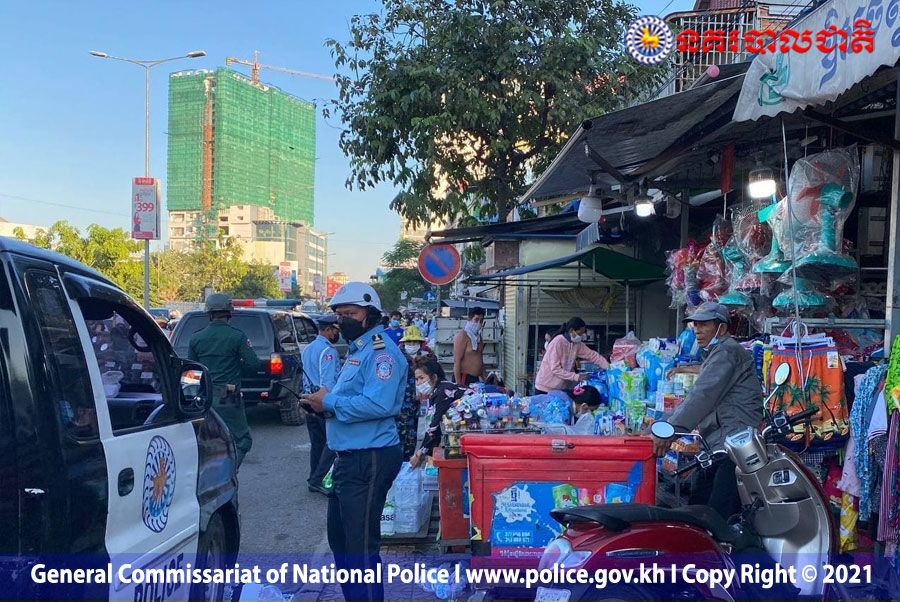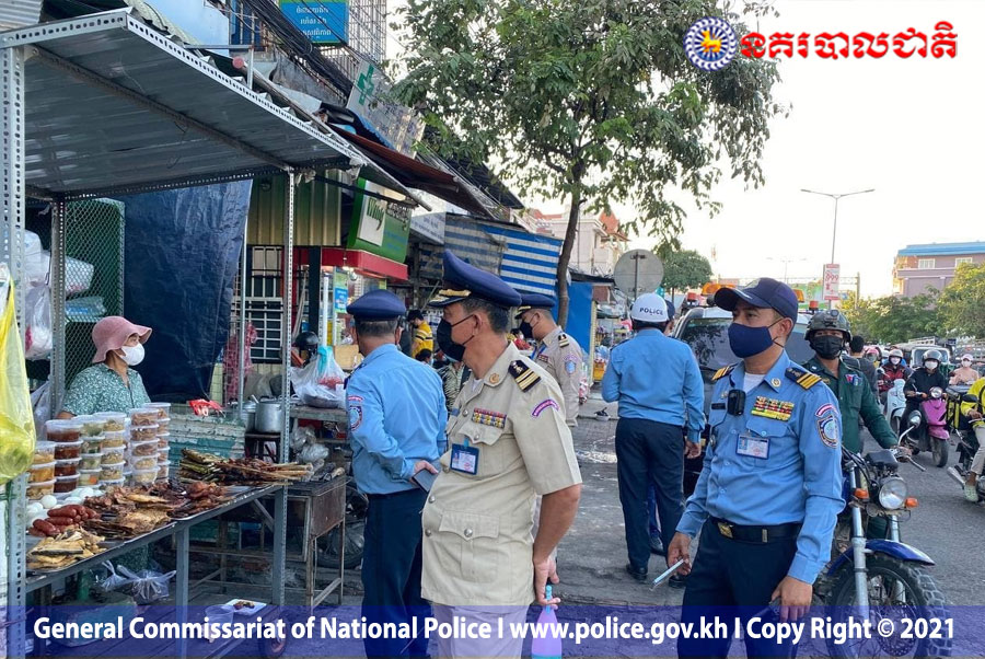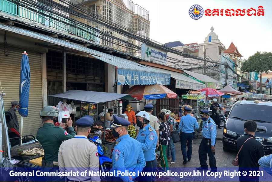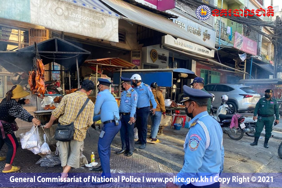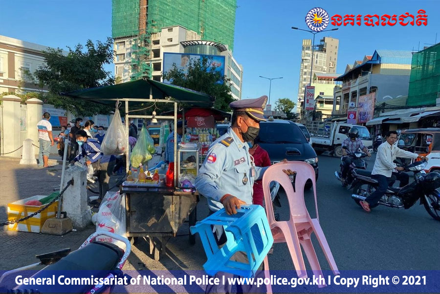 រាជធានីភ្នំពេញ៖ យោងតាមការចុះផ្សាយរបស់ អគ្គស្នងការដ្ឋាននគរបាលជាតិ នៅថ្ងៃទី០៧ ខែធ្នូ ឆ្នាំ២០២១ បានឲ្យដឹងថា នៅលើកំណាត់ផ្លូវលេខ២៧១ ខាងមុខមន្ទីរពេទ្យមិត្តភាពខ្មែរ-សូវៀត រហូតដល់ខាងមុខខ្លោងទ្វារវត្តសន្សំកុសល ក្នុងខណ្ឌមានជ័យ រាជធានីភ្នំពេញ ដែលតែងរងការកកស្ទះចរាចរណ៍ដោយការយកទ្រូងផ្លូវធ្វើអាជីវកម្មពីសំណាក់អាជីវករដាក់លក់ទំនិញ អាហារ តាមរទេះនិងការដាក់តាំងលក់ទំនិញ សម្ភារៈ ឧបករណ៍ផ្សេងៗខាងមុខផ្ទះរឺខាងមុខហាង ក្រុមហ៊ុនបង្កឱ្យបាត់បង់សណ្តាប់ធ្នាប់ ត្រូវបាន កម្លាំងការិយាល័យនគរបាលសណ្តាប់ធ្នាប់ នៃស្នងការដ្ឋាននគរបាលរាជធានីភ្នំពេញអនុវត្តតាមបទបញ្ជាផ្ទាល់របស់ ឯកឧត្តម ឧត្តមសេនីយ៍ឯក ស ថេត អគ្គស្នងការរងនគរបាលជាតិ និងជាស្នងការនគរបាលរាជធានីភ្នំពេញ។