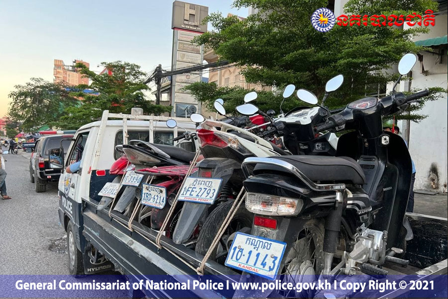 ឃាត់ម៉ូតូបើកបញ្ច្រាសទិស ១៣គ្រឿង និងណែនាំអាជីវករបញ្ឈប់ការតាំងលក់ទំនិញអាហារតាមរទេះ ឧបរណ៍សម្ភារផ្សេងៗរំ-លោភលើទ្រូងផ្លូវកំណាត់ផ្លូវ២៧១ ខាងមុខមន្ទីរពេទ្យមិត្តភាពខ្មែរ-សូវៀត