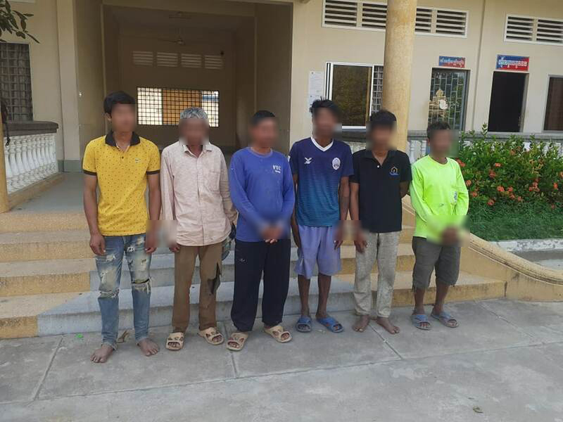 មន្រ្តីជំនាញឱ្យដឹងថា ជនសង្ស័យទាំង៦នាក់ នេះត្រូវបាន កម្លាំងកងរាជអាវុធហត្ថ ខេត្តសហការ ជាមួយមន្រ្តីជលផល ឃាត់ខ្លួន កាលពីថ្ងៃទី០៦ ខែធ្នូ នៅចំណុច ឃុំព្រៃចាស់ ស្រុកឯកភ្នំ ខណៈពួកគេនៅបន្តចេញចូលនៅតំបន់ ដែលរុករានបង្កបង្កើន ផលនៅតំបន់បីនោះ មិនព្រមចាកចេញឱ្យផុត។
