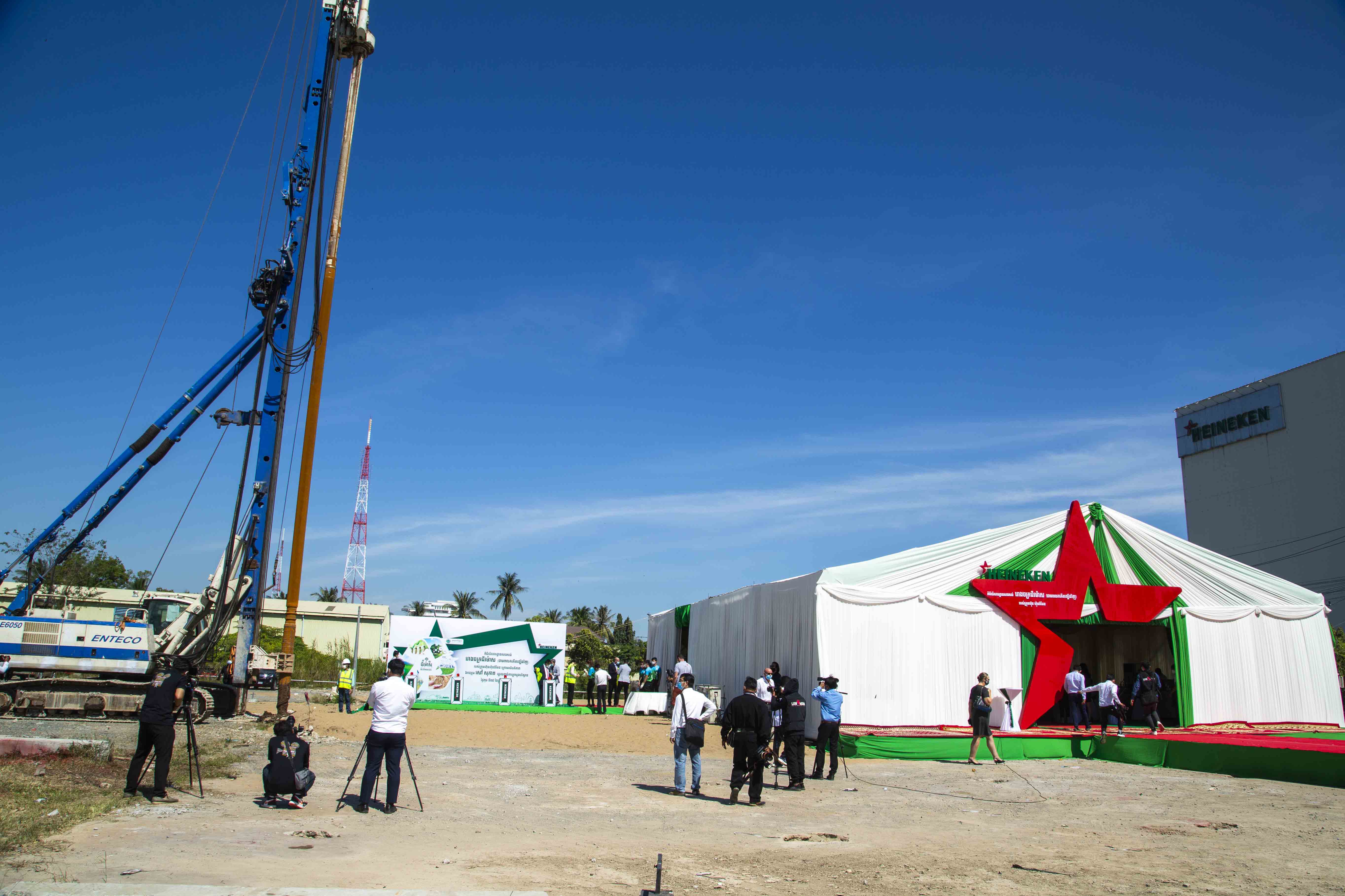 ឯកឧត្ដម សៅ សុភាព រដ្ឋលេខាធិការក្រសួងបរិស្ថានកម្ពុជា បានធ្វើជាអធិបតីក្នុងពិធីបញ្ចុះបឋមសិលានេះ ដែលត្រូវបានរៀបចំឡើងនៅទល់មុខរោងចក្ររបស់ក្រុមហ៊ុនស្រាបៀរ ហ៊ិននីគែន តាមបណ្តោយវិថីស្រាបៀរថៃហ្គ័រ ភូមិរបោះអង្កាញ់ សង្កាត់ព្រែកឯក ខណ្ឌច្បារអំពៅ រាជធានីភ្នំពេញ កម្ពុជា។