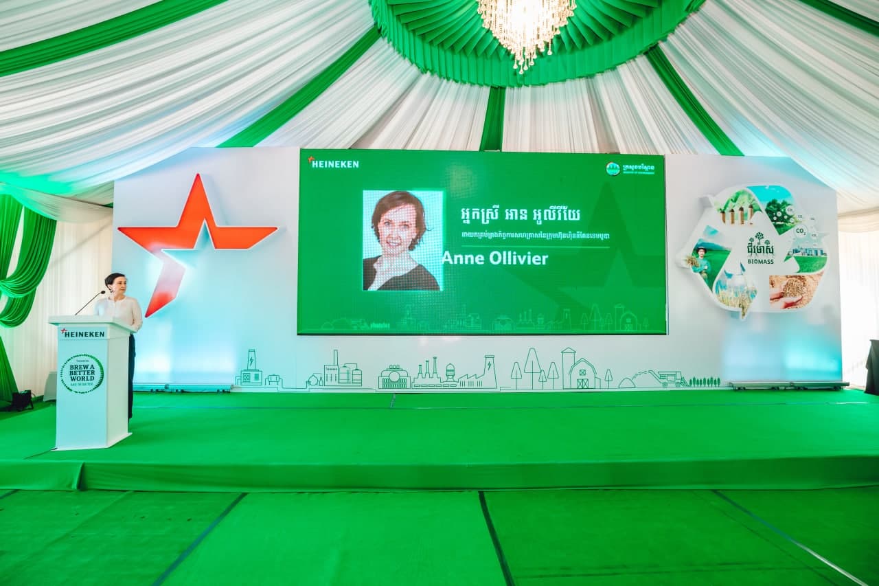 លោកស្រី អេននី អូលីវីយែ នាយកផ្នែកកិច្ចការសហគ្រាសរបស់ក្រុមហ៊ុន ហ៊ិននីគែន ខេមបូឌា បានថ្លែងថា៖ «ការប្ដេជ្ញារបស់យើងចំពោះនិរន្តរភាពមិនមែនជារឿងថ្មីឡើយ។ “ចូលរួមអភិវឌ្ឍកម្ពុជាដ៏ល្អប្រសើរ” ដែលជាមហិច្ឆិតាអភិវឌ្ឍដោយចីរភាពរបស់យើង បានក្លាយជាផ្នែកមួយនៃវប្បធម៌ក្រុមហ៊ុនរបស់យើងសម្រាប់រយៈពេលវែងរួចទៅហើយ។ រយៈពេលមួយទសវត្សរ៍ចុងក្រោយនេះ យើងបាននិងកំពុងផ្ដោតលើប្រសិទ្ធភាពថាមពល និងបានចាប់ផ្ដើមប្រើប្រាស់ថាមពលកកើតឡើងវិញ ដូចជាជីវម៉ាសជាដើម។ តាំងពីឆ្នាំ២០១៣មក យើងបានកាត់បន្ថយរួចហើយនូវការបញ្ចេញឧស្ម័នកាបូន ៥០ភាគរយ»។