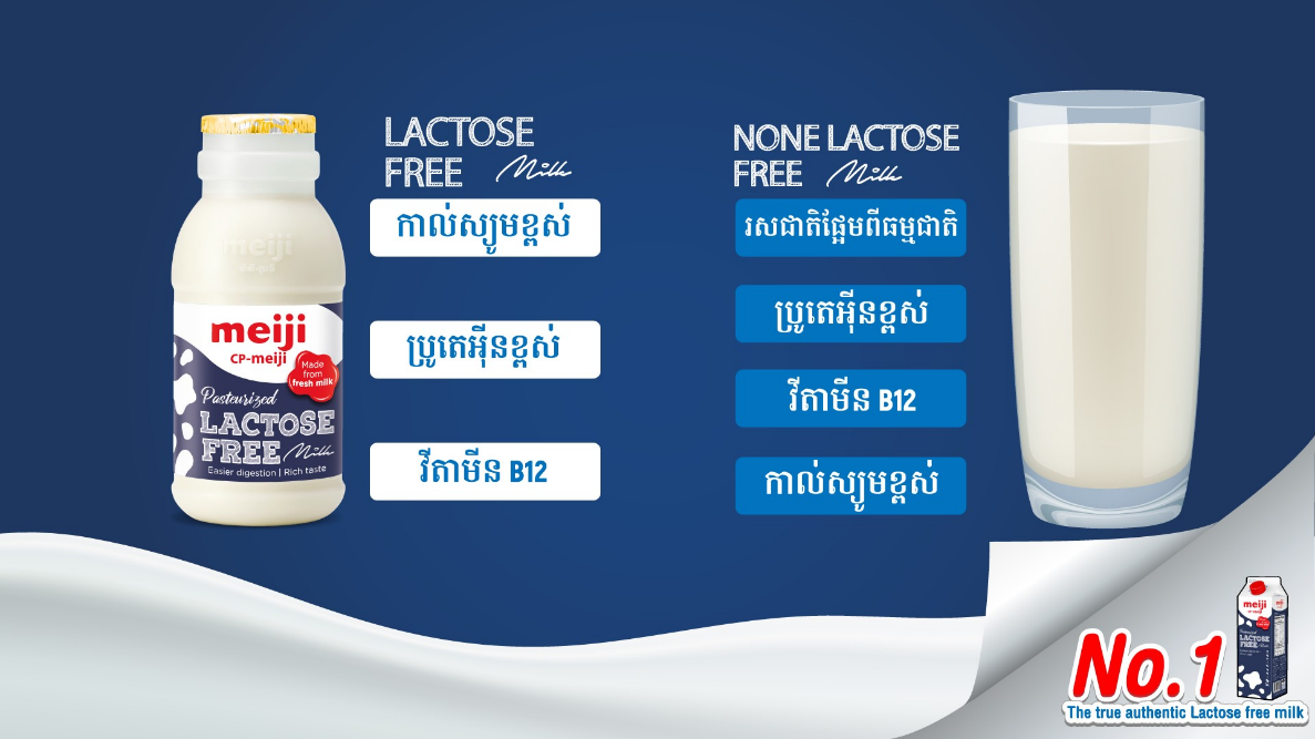 នៅពេលដែលនិយាយពីទឹកដោះគោឡាក់តូសហ្វ្រី សូមជ្រើសរើសយកទឹកដោះគោMeijiឡាក់តូសហ្វ្រី ដែលមិនត្រឹមតែសំបូរនូវសារធាតុបំប៉នក្នុងទឹកដោះគោដែលមិនមានជាតិស្ករឡាក់តូសនិងជំនួយដល់សុខភាពប្រព័ន្ធរំលាយអាហារប៉ុណ្ណោះទេ ថែមទាំំងមានរសជាតិឆ្ងាញ់និងផ្អែមស្រទន់ពីធម្មជាតិ!