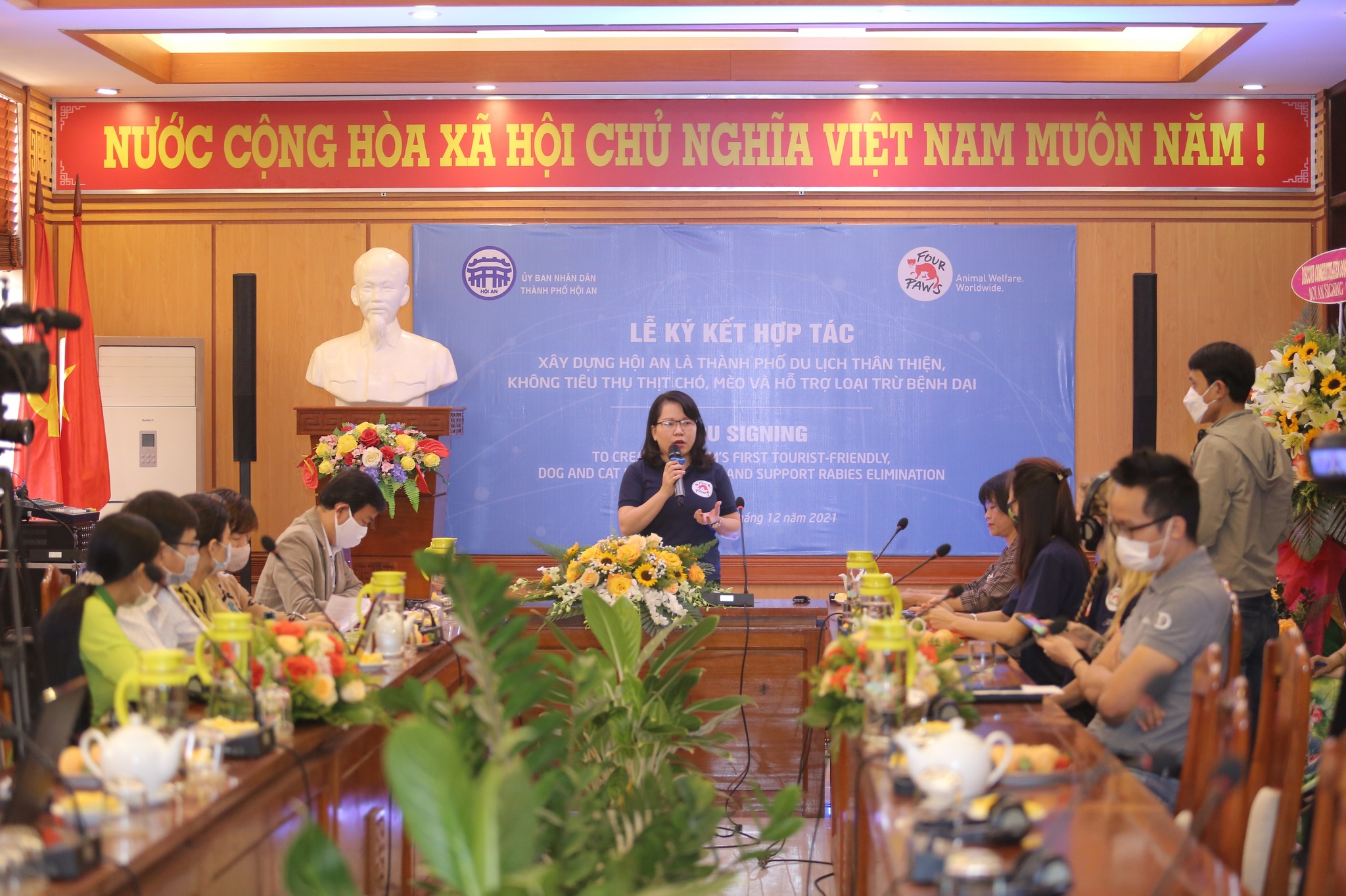 លោក Nguyen The Hung ជាអនុប្រធានគណៈកម្មាធិការប្រជាជនទីក្រុង Hoi An បានមានប្រសាសន៍ថា “សុខុមាលភាពសត្វមានសារៈសំខាន់ចំពោះភ្ញៀវទេសចរណ៍ជាតិ និងអន្តរជាតិ។ ជាពិសេសនោះគឺយើងមើលឃើញថា សត្វចិញ្ចឹម កំពុងតែត្រូវបានទទួលការស្រឡាញ់ជាច្រើនពីប្រជាជនវៀតណាម ដោយពួកចាត់ទុកដូចជាសមាជិកគ្រួសារតែម្តង។ ដោយជាគោលដៅទេសចរណ៍ដ៏ពេញនិយមមួយ យើងចង់ជួយលើកកម្ពស់សុខុមាលភាពសត្វតាមរយៈការលុបបំបាត់ជំងឺឆ្កែឆ្កួត បញ្ឈប់ការជួញដូរសាច់សត្វឆ្កែ និងឆ្មា និងធ្វើឱ្យទីក្រុងក្លាយជាគោលដៅទេសចរណ៍ដ៏សំខាន់មួយ»។
