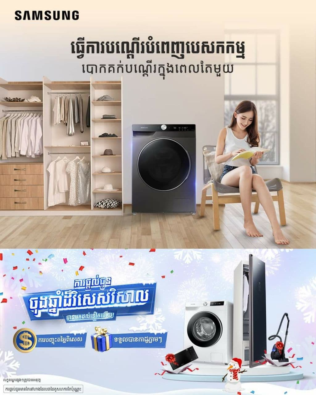 (ភ្នំពេញ) ថ្ងៃទី ១៥ ខែធ្នូ ឆ្នាំ២០២១៖ លើសពីភាពអស្ចារ្យ…លើសពីភាពភ្ញាក់ផ្អើល…លើសពីប្រូម៉ូសិនថែមជូនធម្មតា…! អតិថិជនទូទាំងប្រទេសទាំងអស់ គ្រាន់តែជាវគ្រឿងអេឡិចត្រូនិចដែលបានកំណត់ដូចជា៖ ទូទឹកកក ម៉ាស៊ីនបោកសម្លៀកបំពាក់ និងទូរទស្សន៍ សាមសុង ចាប់ពីថ្ងៃនេះដល់ថ្ងៃទី 31 ខែធ្នូ ឆ្នាំ 2021 ឬ រហូតអស់ពីស្តុក…អតិថិជនទាំងអស់នឹងទទួលបានការបញ្ចុះតម្លៃរហូតដល់ $1500 និងមានការថែមជូន៖ ម៉ាស៊ីនបូមធូលី , Microwave ដ៏ទំនើបភ្លាមៗតែម្តងដែលមានតម្លៃរហូតដល់ទៅ $450…!!! វ៉ាវ…ពិតជាអស្ចារ្យមែនទែន…!