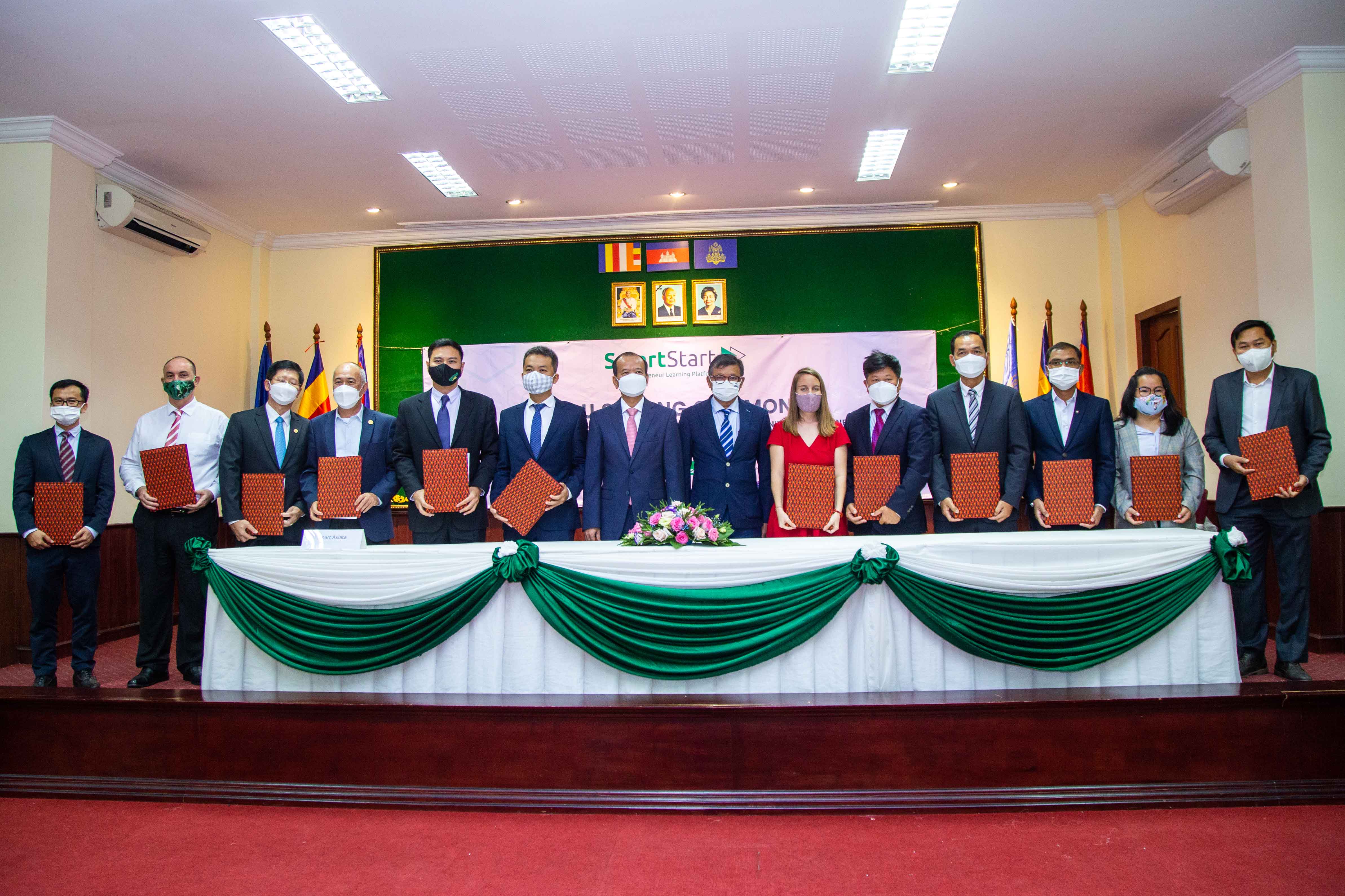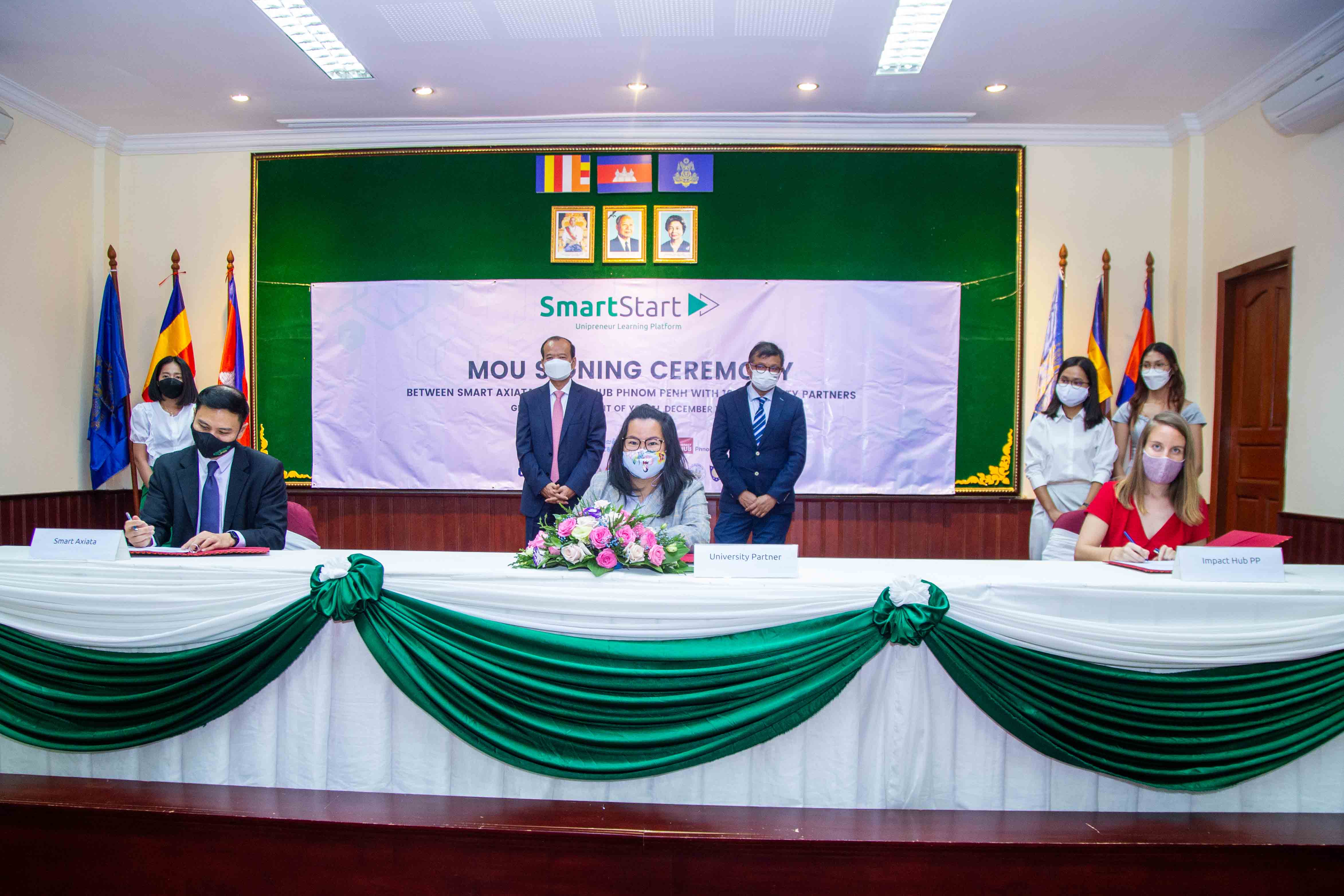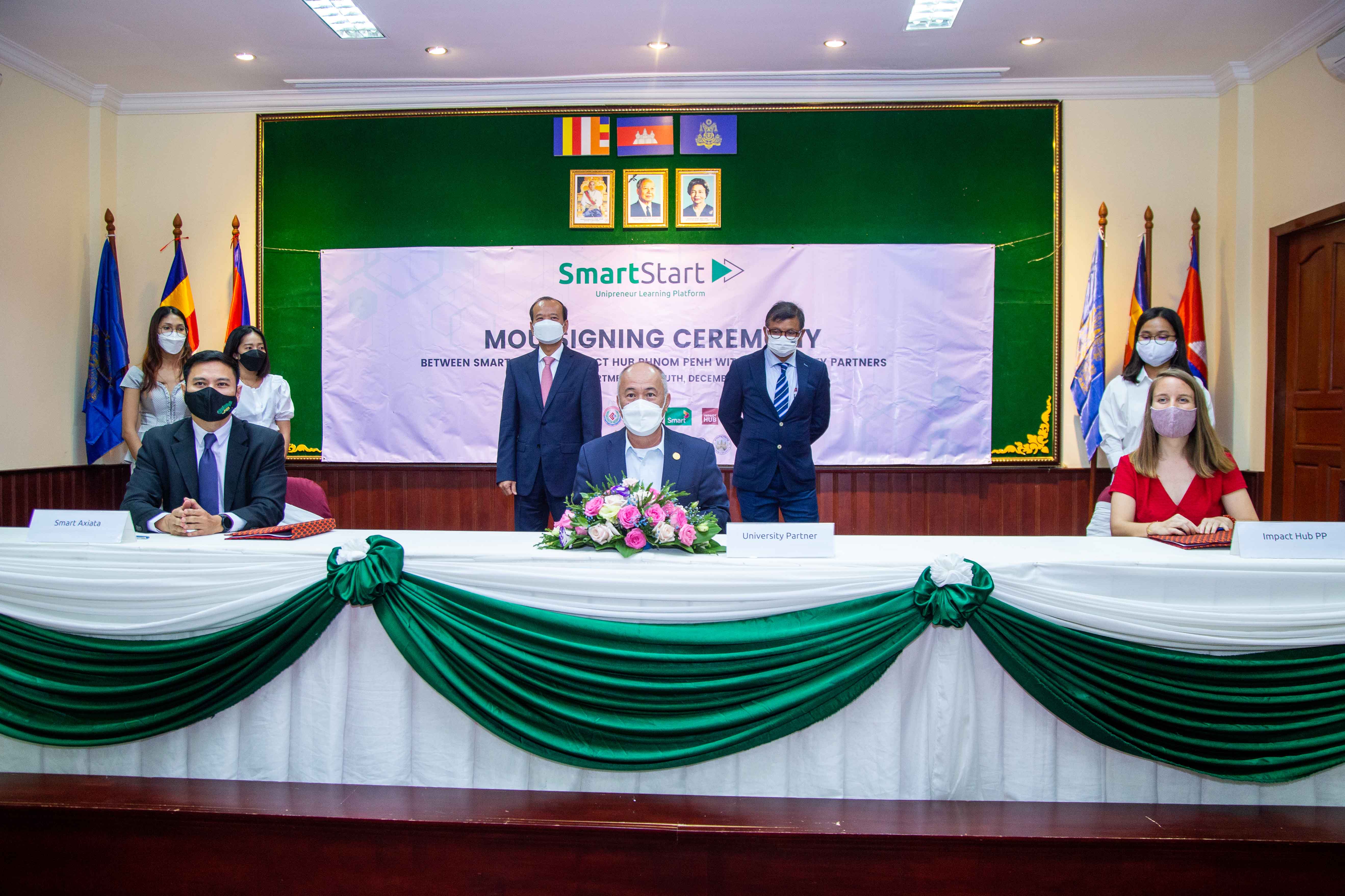 ពិធីចុះអនុស្សរណៈយោគយល់គ្នានេះធ្វើឡើងនៅពីថ្ងៃសុក្រ ទី១៧ ខែធ្នូ ឆ្នាំ២០២១ ក្រោមអធិបតីភាព ឯកឧត្តមបណ្ឌិតសភាចារ្យ ហង់ ជួន ណារ៉ុន រដ្ឋមន្ត្រីក្រសួងអប់រំ យុវជន និងកីឡា ឯកឧត្តម ជា វ៉ាន់ដេត រដ្ឋមន្ត្រីក្រសួងប្រៃសណីយ៍ និងទូរគមនាគមន៍ Feiruz Ikhwan នាយកប្រតិបត្តិស្តីទីក្រុមហ៊ុន Smart Axiata Melanie Mossard នាយកផ្នែកសហគ្រិន និងនវានុវត្តន៍នៃ Impact Hub ភ្នំពេញ និងសាកលវិទ្យាធិការមកពីសាកលវិទ្យាល័យទាំង ១០ ដែលជាផ្នែកមួយនៃកម្មវិធីដើម្បីជម្រុញសហគ្រិនភាពបច្ចេកវិទ្យានៅកម្ពុជា ដោយស្របតាមចក្ខុវិស័យរបស់រាជរដ្ឋាភិបាលកម្ពុជា ក្នុងការអភិវឌ្ឍន៍វិស័យអប់រំ និងបច្ចេកវិទ្យាគមនាគមន៍ព័ត៌មានក្នុងប្រទេស ដើម្បីឆ្ពោះទៅរកការបង្កើត ប្រទេសកម្ពុជាឌីជីថល (Digital Cambodia )។