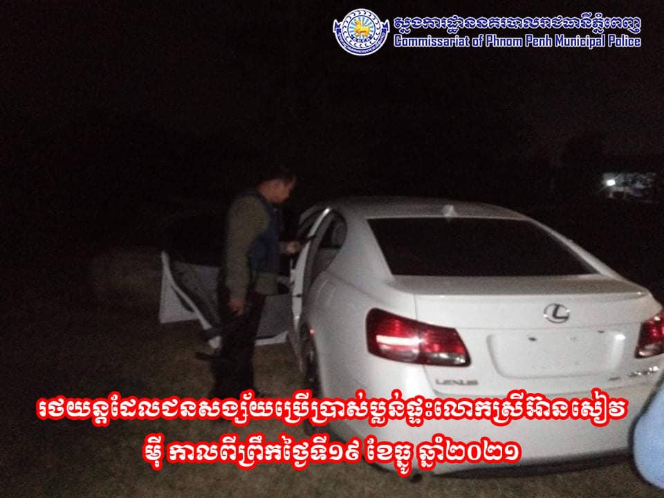 ក្រុមចោរប្លន់ផ្ទះឧកញ៉ា អ៊ាន សៀវម៉ី បានយករថយន្ត ដែលជិះធ្វើសកម្មភាព ទៅប្លុងចោល ហើយមានបំណងដុតកំទេចចោលបំផ្លាញភស្តុតាង