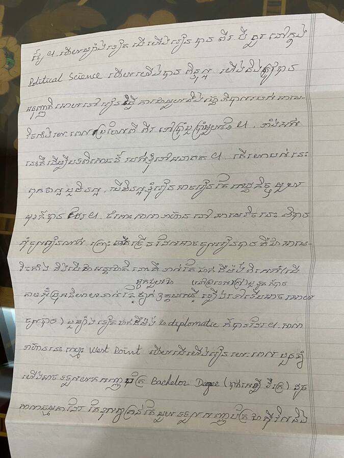 (ភ្នំពេញ)៖ នៅព្រឹកព្រលឹមថ្ងៃទី២៣ ខែធ្នូ ឆ្នាំ២០២១នេះ សម្តេចអគ្គមហាសេនាបតីតេជោ ហ៊ុន សែន នាយករដ្ឋមន្ត្រីនៃព្រះរាជាណាចក្រកម្ពុជា តាមរយៈ ហ្វេសប៊ុករបស់សម្តេចបានបង្ហាញនូវសំបុត្រសម្ងាត់មួយដែលបានលាក់ទុកជិត២៨ឆ្នាំមកហើយ ដែលជាសំបុត្ររបស់ឯកឧត្តម ហ៊ុន ម៉ាណែត ផ្ញើជូនសម្តេចបញ្ជាក់ពីការសិក្សាខាងផ្នែកយោធា និងវិទ្យាសាស្ត្រនយោបាយនៅសហរដ្ឋអាមេរិក បន្ថែមលើការសិក្សាផ្នែកសេដ្ឋកិច្ច។