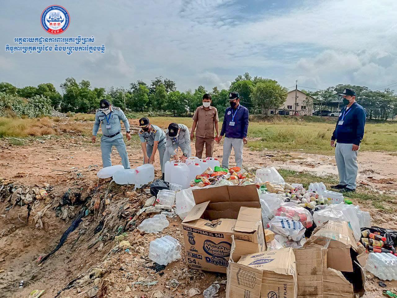 ទំនិញខូចគុណប្រមាណជិត ៥០០គីឡូក្រាម និងអាល់កុលក្លែងក្លាយចំនួន ៧០០លីត្រ ត្រូវបានកម្ទេចចោលនៅរាជធានីភ្នំពេញ