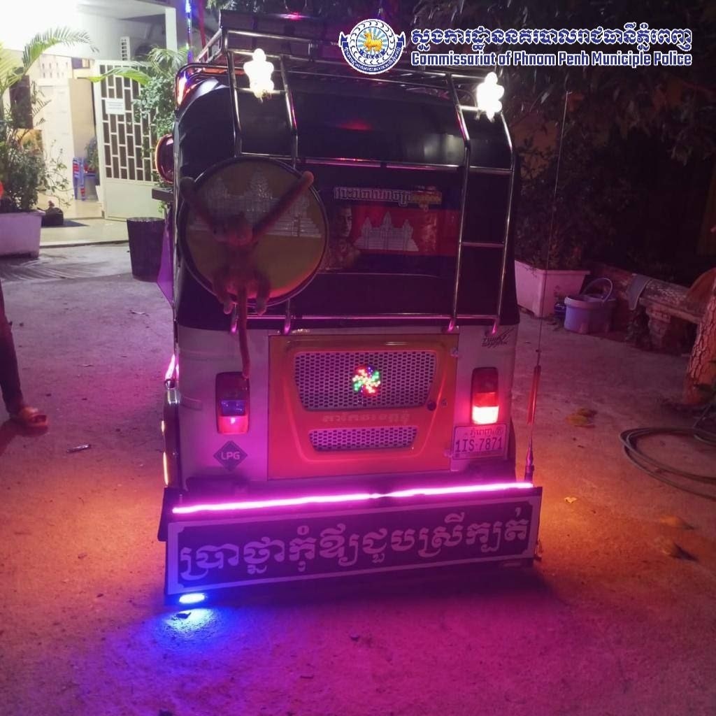 អ្នកបើកបរកង់៣ ឥណ្ឌា ដាក់ភ្លើងពណ៌ និងអក្សរមិនត្រឹមត្រូវ ត្រូវបានសមត្ថកិច្ចនគរបាលរដ្ឋបាលកាកាបទី២ អោយដកចេញ រួចធ្វើកិច្ចសន្យាបញ្ឈប់សកម្មភាព