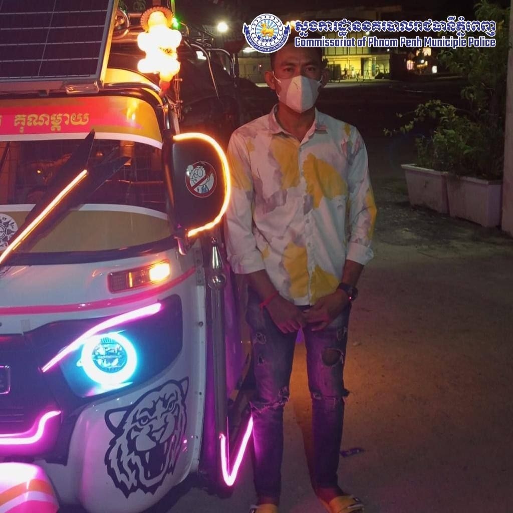 រាជធានីភ្នំពេញ៖ យោងតាមការចុះផ្សាយផេកផ្លូវការរបស់ ស្នងការដ្ឋាននគរបាលរាជធានីភ្នំពេញ នៅថ្ងៃទី០៥ ខែមករា ឆ្នាំ២០២២ បានឲ្យដឹងថា បុរសម្នាក់ដែលបានបើកបរ ផាស អេប ដាក់ភ្លើង និងសរសេរអក្សរមិនត្រឹមត្រូវ ត្រូវបានសមត្ថកិច្ចនៃប៉ុស្តិ៍នគរបាលរដ្ឋបាល កាកាបទី២ បានធ្វើការឃាត់ដើម្បីដកភ្លើង និងអក្សរចេញ និងបានធ្វើការអប់រំណែនាំ និងធ្វើកិច្ចសន្យាបញ្ឈប់សកម្មភាពនេះផងដែរ។